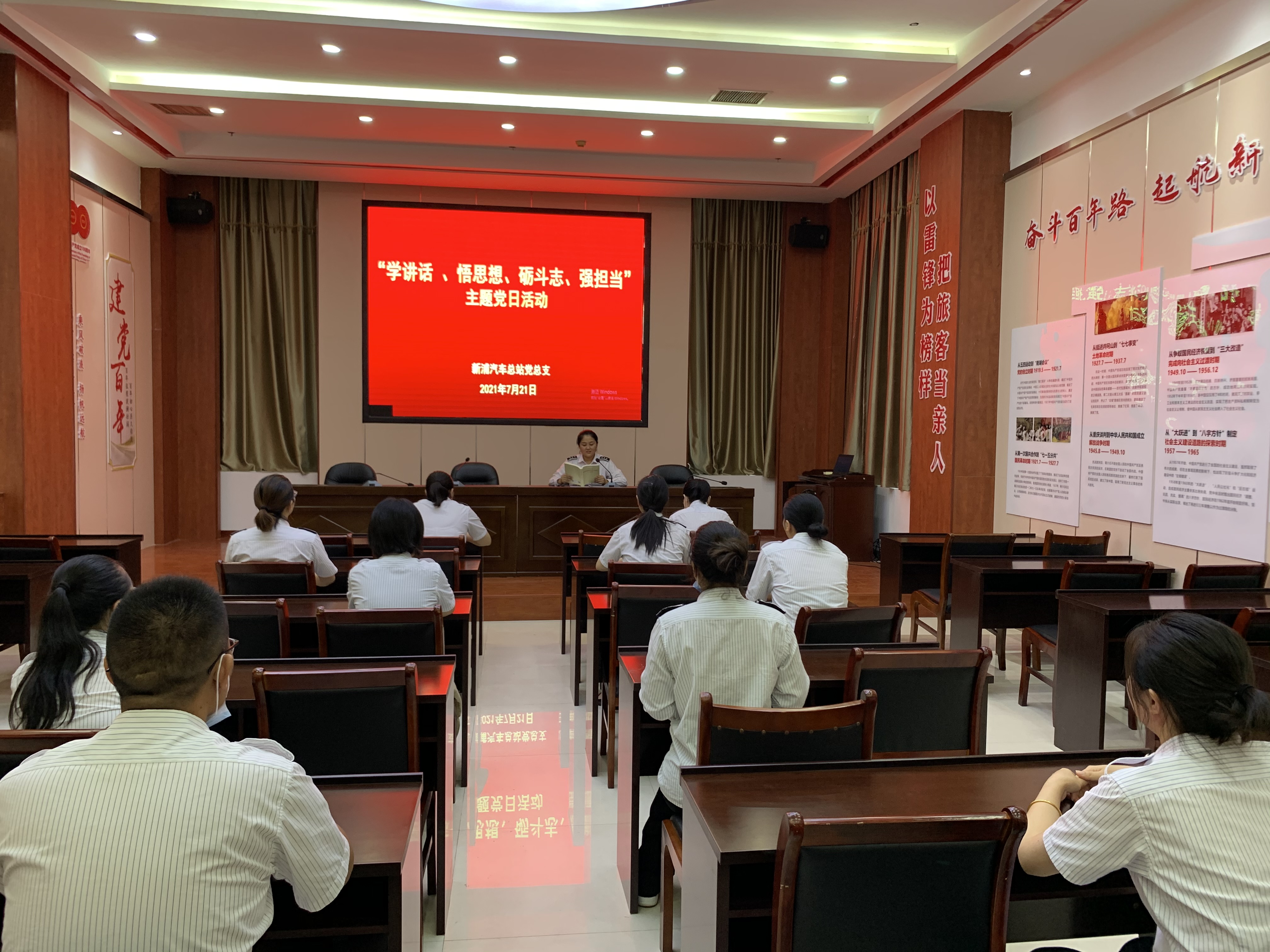 为进一步引导全体党员提高政治站位,统一思想认识,转变工作作风,7月21日,新浦汽车总站党总支组织党员、入党积极分子在二楼党员活动室开展“学讲话、悟思想、砺斗志、强担当”主题党日活动。