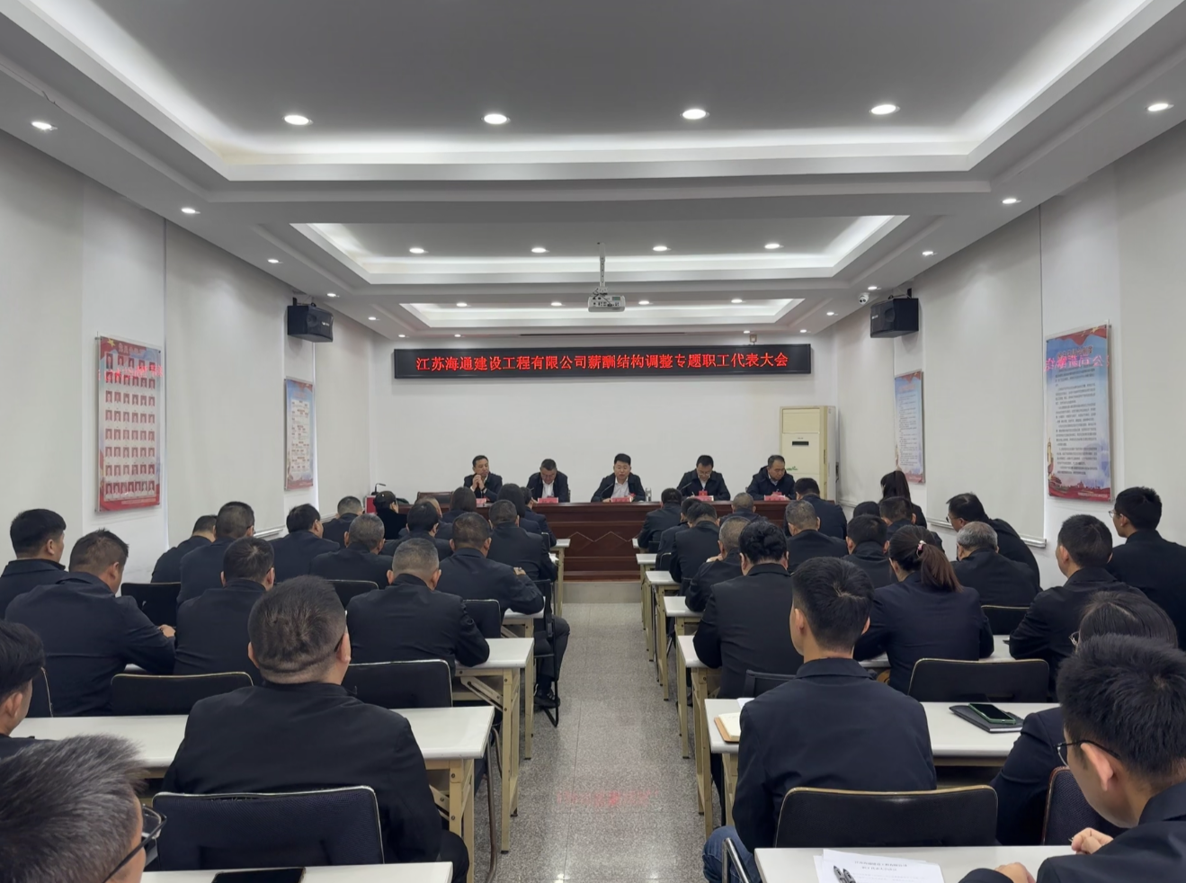 为进一步完善薪酬激励机制,激发员工工作积极性,保障企业与员工共同发展,10月24日,江苏海建公司在多功能会议厅召开薪酬结构调整专题职工代表大会。公司领导班子成员、职工代表共计55人参会,会议由公司副总经理、工会主席邵巍主持。