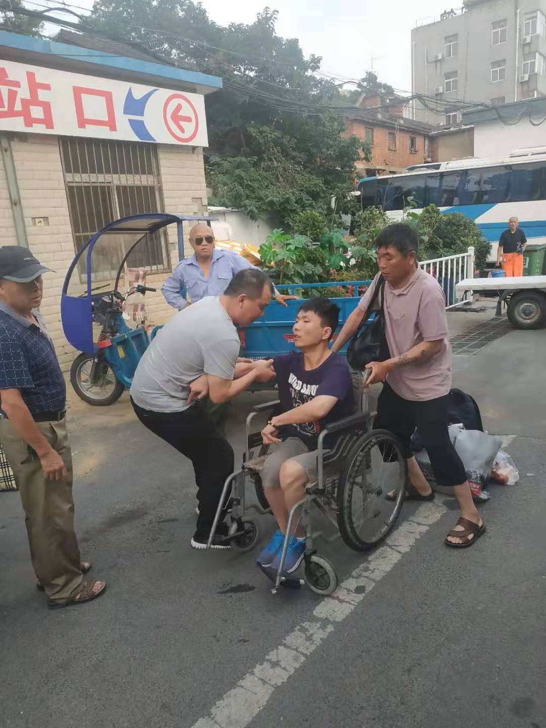 通过车上的监控视频可以清楚看到,在6月26日中午10:00,车辆到达灌云上下客时,一名残障男子乘坐的轮椅车到达车后门,驾驶员何爱瑶赶紧将车安全停稳,离开驾驶位,小跑到车后门。他先将残障男子搀扶上车后,又重新下车去,将轮椅折叠后搬上车厢放置好。随后,许鹏为残障男子找了一个靠门口的位置,让他坐好扶稳。安顿好残障男子后,何爱瑶师傅才回到驾驶位继续发车。等残疾男子到站后,何爱瑶师傅又起身将他和轮椅送下车。
