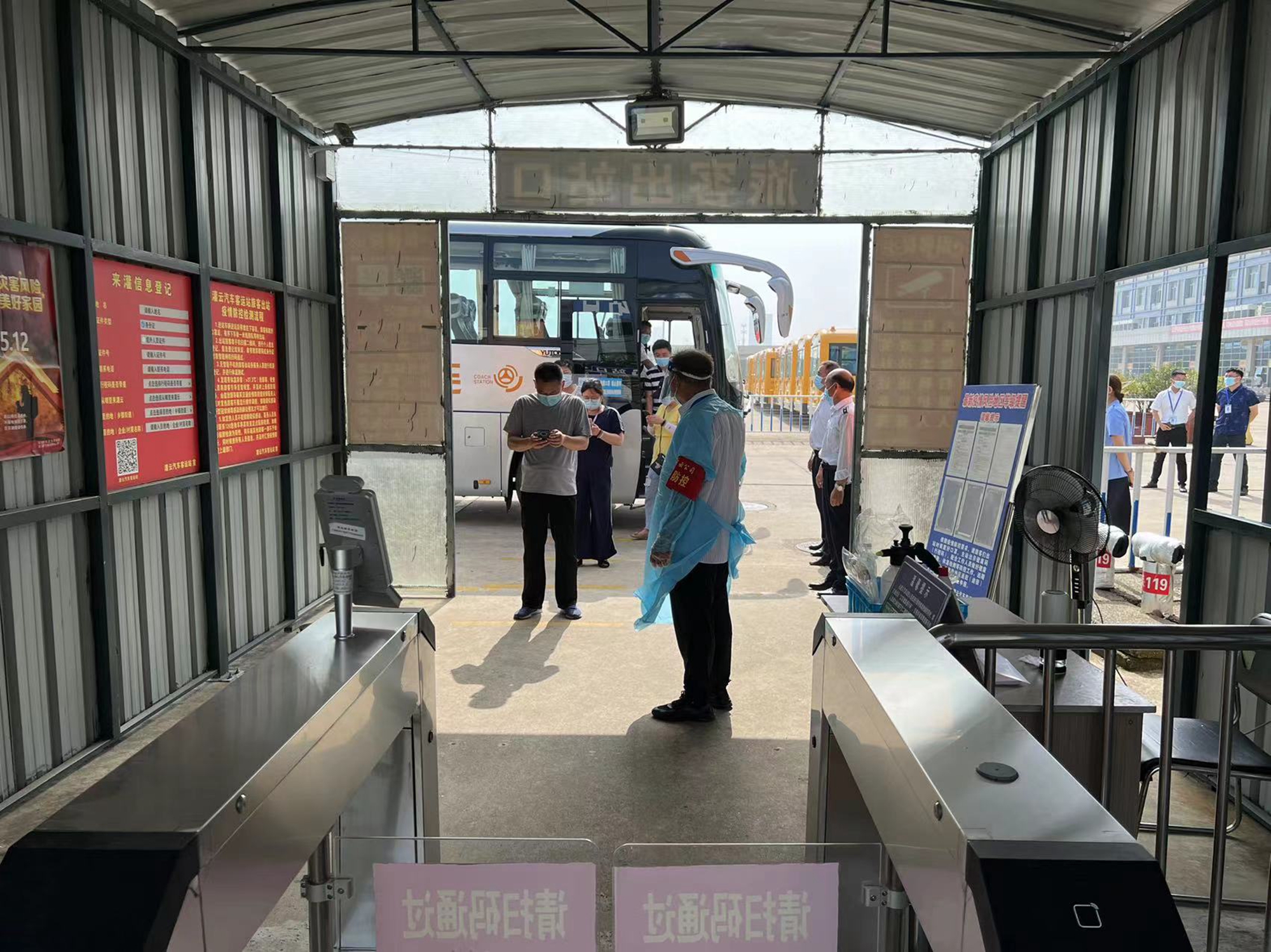 6月27日,支部组织党员志愿者在客运站开展志愿服务活动,协助站务一线人员做好体温检测、双码查验、信息登记、车辆消杀等疫情防控工作。