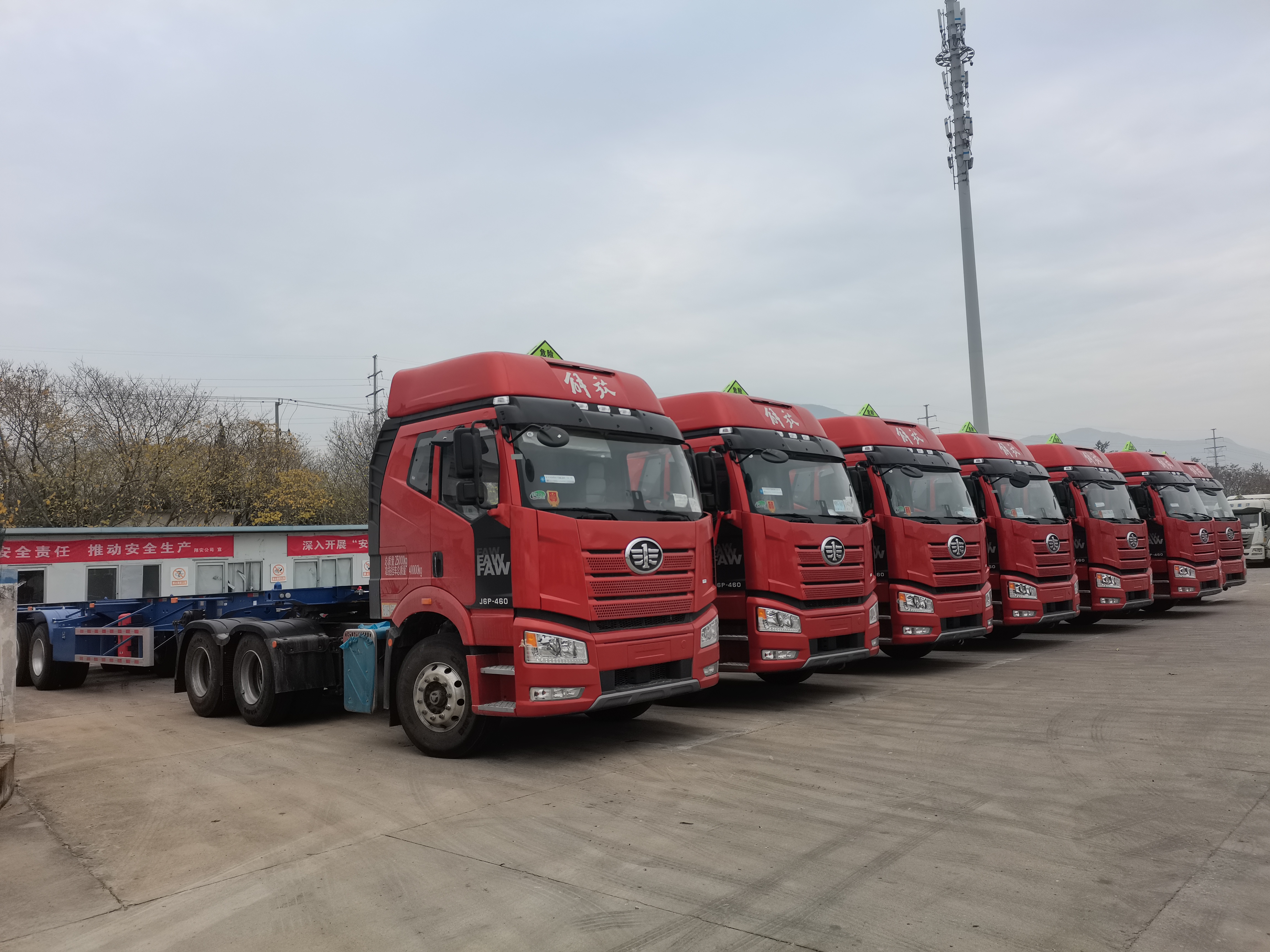 在翔安公司院内,10台崭新的危化品运输车辆整齐划一,车辆运营手续正加快办理,驾押人员经过严格培训已全部到位。