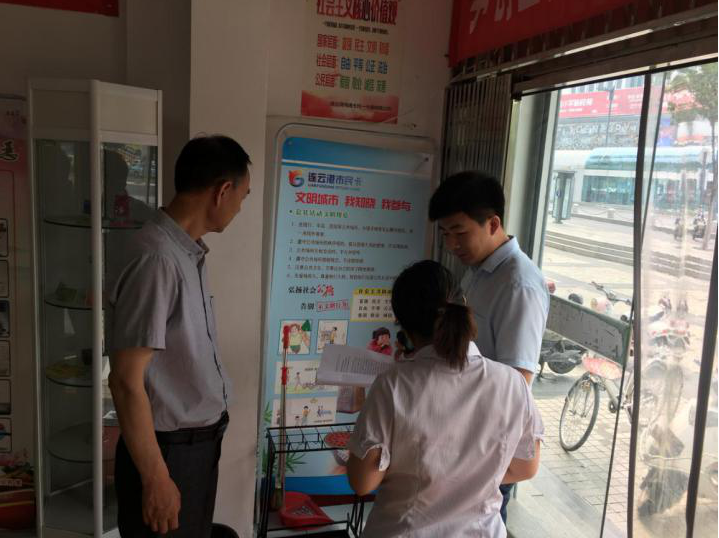 集团统筹部一行人先后来到新浦营业厅和连云区营业厅,对照窗口服务标准查看了现场的卫生情况、工作牌的配备情况、志愿服务站的设置情况。对于文明接待问题,李部长强调,礼貌服务不像其他指标配足配好就可以,面对形形色色的客户,一定要保持足够的耐心和理智,要做好一线服务人员的培训工作。通过检查李部长对市民卡公司上阶段创文工作表示肯定,尤其是连云区营业厅受到了李部长的表扬。
