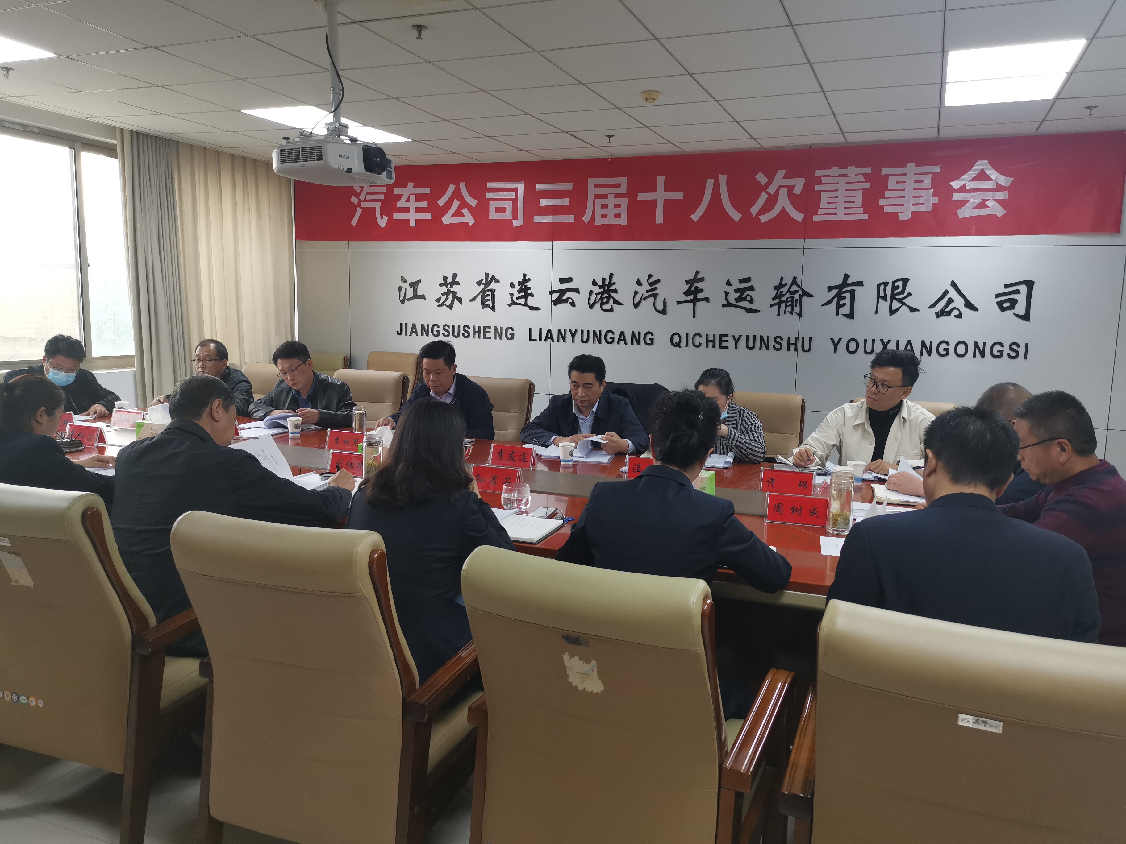 10月29日下午,连汽公司在四楼会议室召开三届十八次董事会。公司董事李树军、刘佃华、李友连、鞠仕亮、董红波出席会议,监事会主席温海玲、监事方怀强、周树成和公司班子其他成员及相关处室负责人列席会议。会议由交通控股集团副总经理、连汽公司董事长李树军主持。