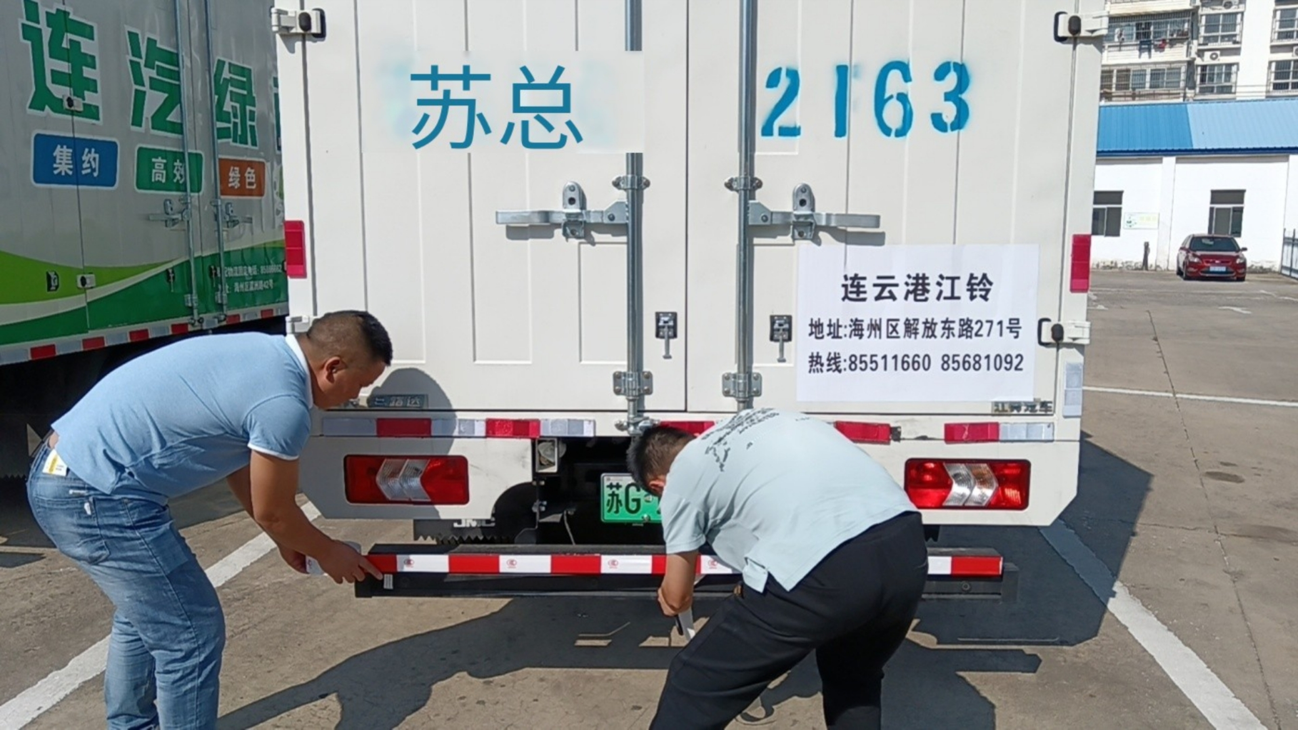 为进一步提高绿配公司新能源车辆在夜间或恶劣天气下运行的安全性,有效预防和减少因低能见度而造成的道路交通事故,10月25日,连汽绿配公司为25台新能源厢式货车增贴车身反光标贴。
