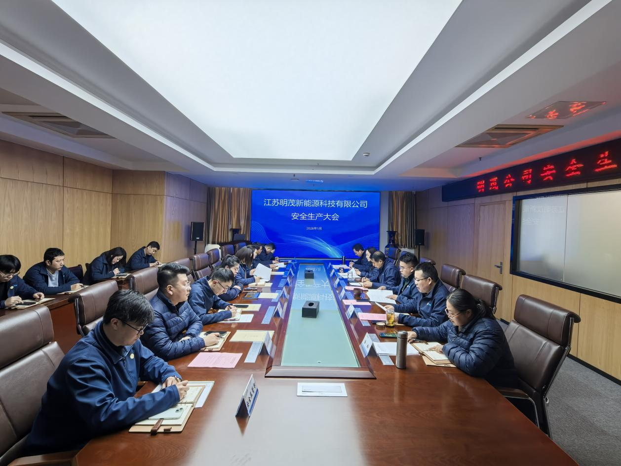 2026年1月9日下午,江苏明茂新能源科技有限公司在公司视频会议室召开2026年安全生产大会,全面总结2025年安全生产工作,分析当前形势,部署2026年重点任务。公司领导班子成员、各权属单位、各部门负责人、主管及一线班组长参加会议。会议由公司总经理刘东主持。