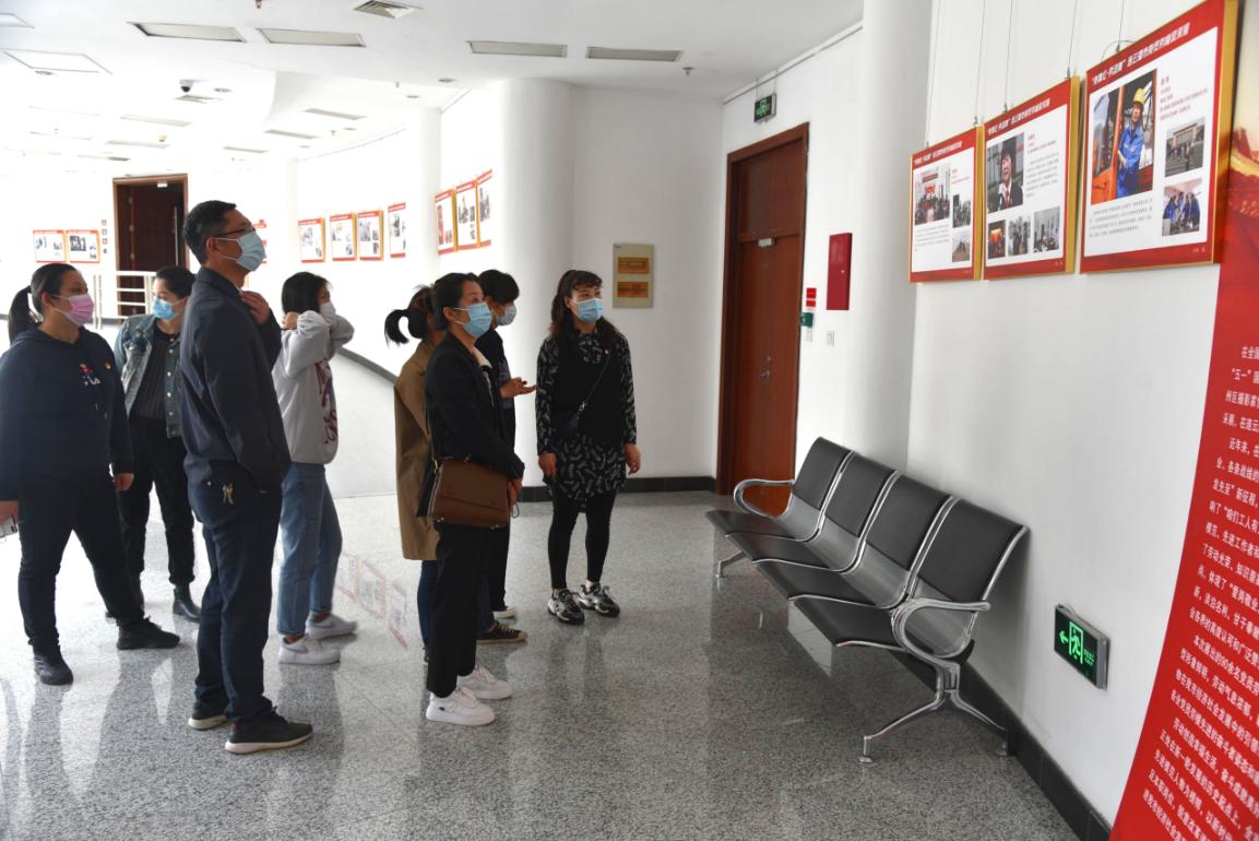 5月8日,江苏海建公司工会组织了20余名党员干部职工到达市博物馆二楼,参观市总工会组织的“党旗红·劳动美”党员劳模风采展活动。