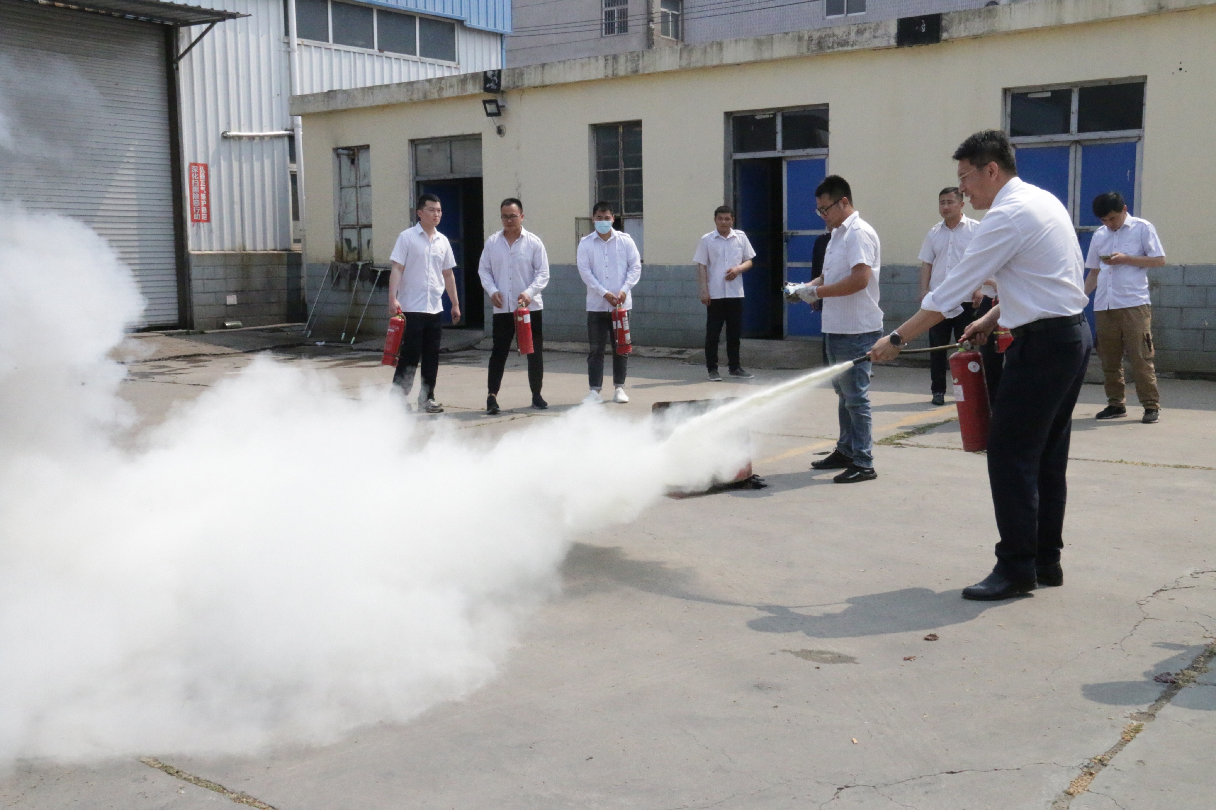 为了切实加强消防安全管理,提高全员安全消防素质、安全防范与自救能力,确保车站财产和旅客、员工的人身安全,保证安全生产无事故,5月27日上午9:30,东海公司组织了一场消防安全演练。领导班子、中层干部、一线职工共30人参加此次演练。