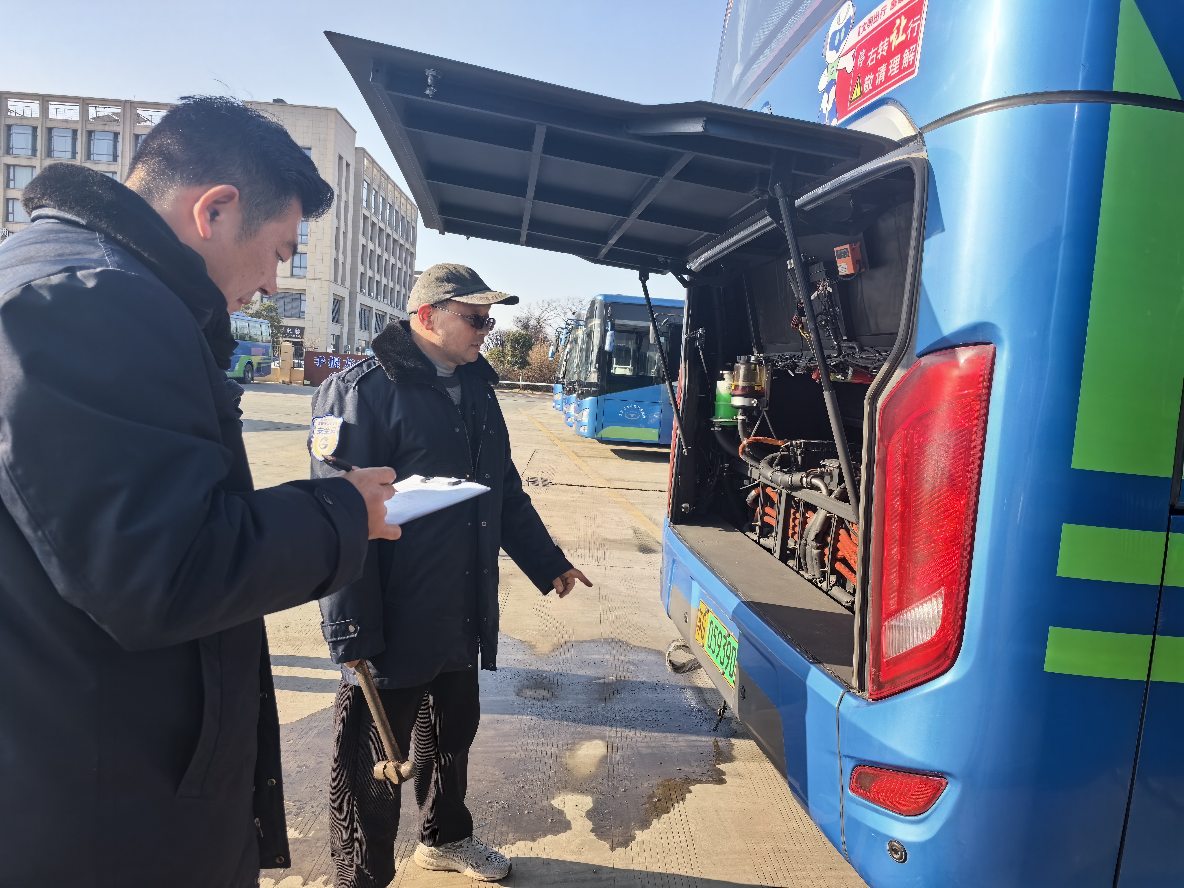 本次抽查严格遵循“四不两直”的原则,检查组深入徐圩客运站、邻里中心等停车点,随机抽取在岗驾驶员作为被查对象,重点核验驾驶员是否严格执行“出车前、行车中、收车后”三个关键环节的检查要求。在出车前检查环节,细致核查驾驶员是否对车辆轮胎磨损程度、胎压状态、制动系统、转向系统等核心部件完成全面检查;在行车中检查环节,通过问询驾驶员、查阅行车记录等方式,核查其在行驶过程中是否实时监测车辆运行状态,及时排查异响等异常情况;在收车后检查环节,重点核查车辆保养记录、故障报修流程执行情况,以及是否对车辆外观、底盘、灯光、安全防护设施(灭火器、三角警示牌等)开展全面检查与规整。