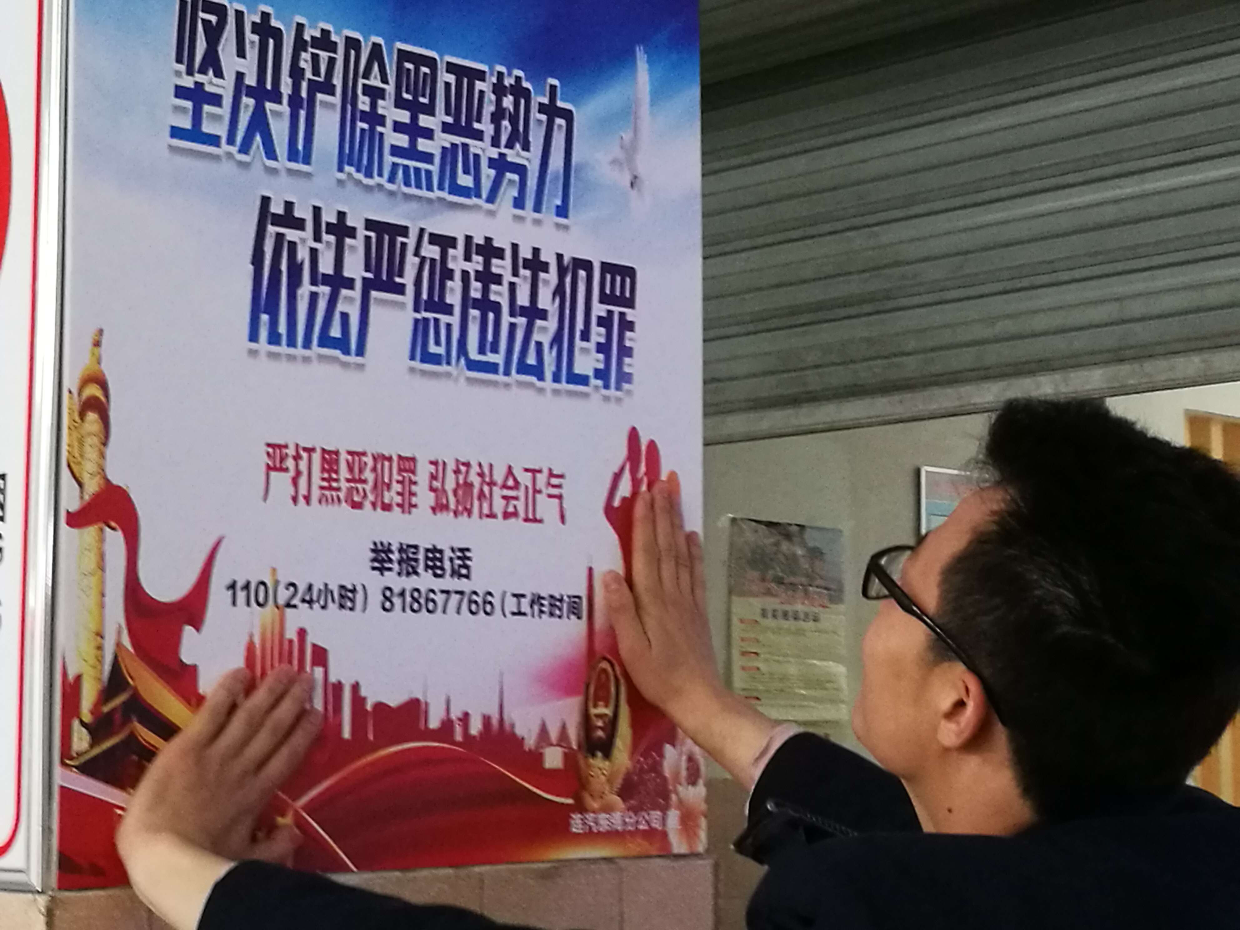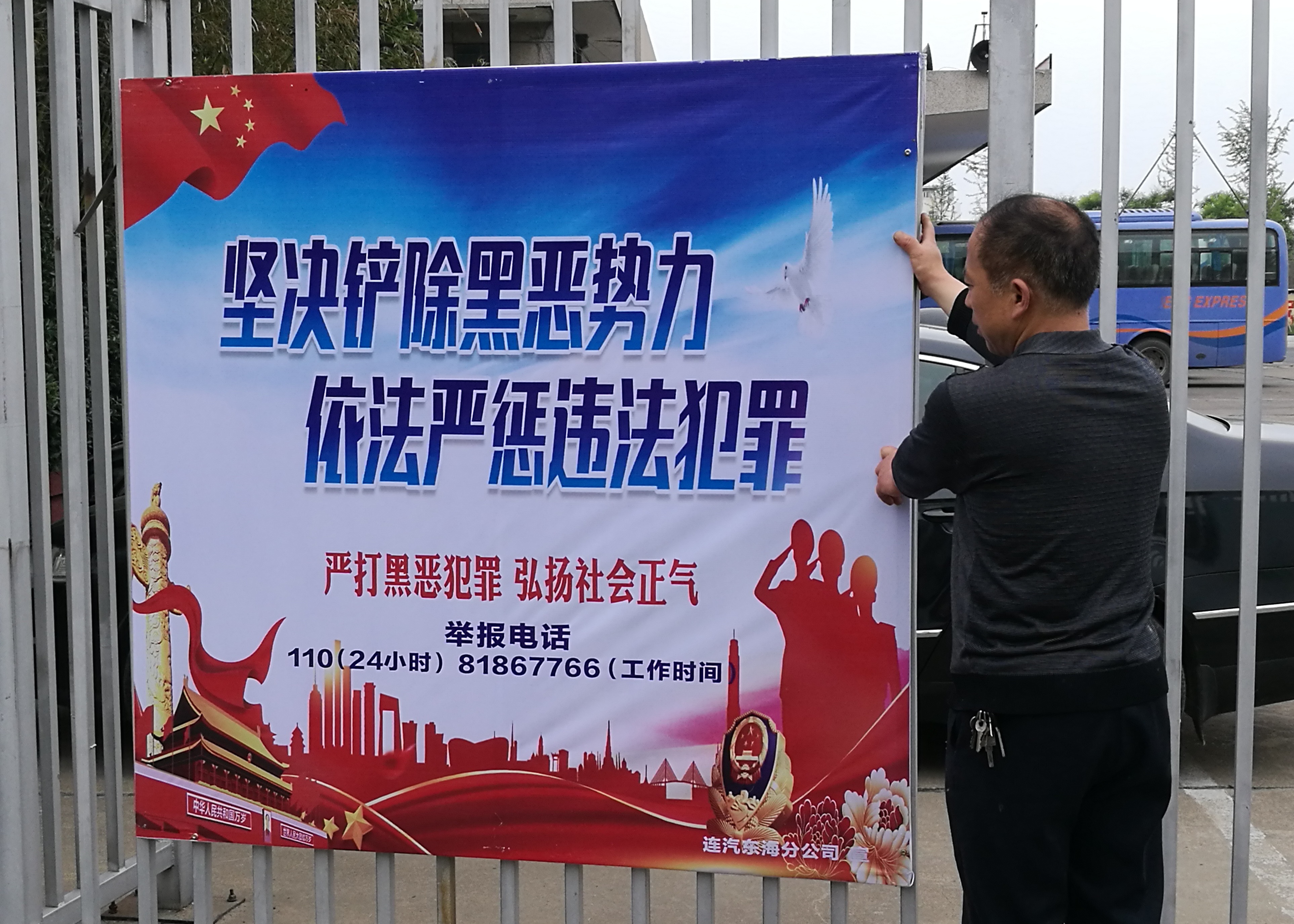 为落实上级和县委、县政府扫黑除恶专项斗争工作要求,加大宣传力度,营造人人关心、人人参与的浓郁氛围,维护分公司正常的生产工作秩序,5月19日,东海公司张贴扫黑除恶专项斗争标语、悬挂横幅、设置安装宣传栏。