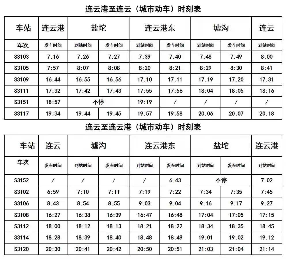 S3101 连云港-连云 发车时间为06:30