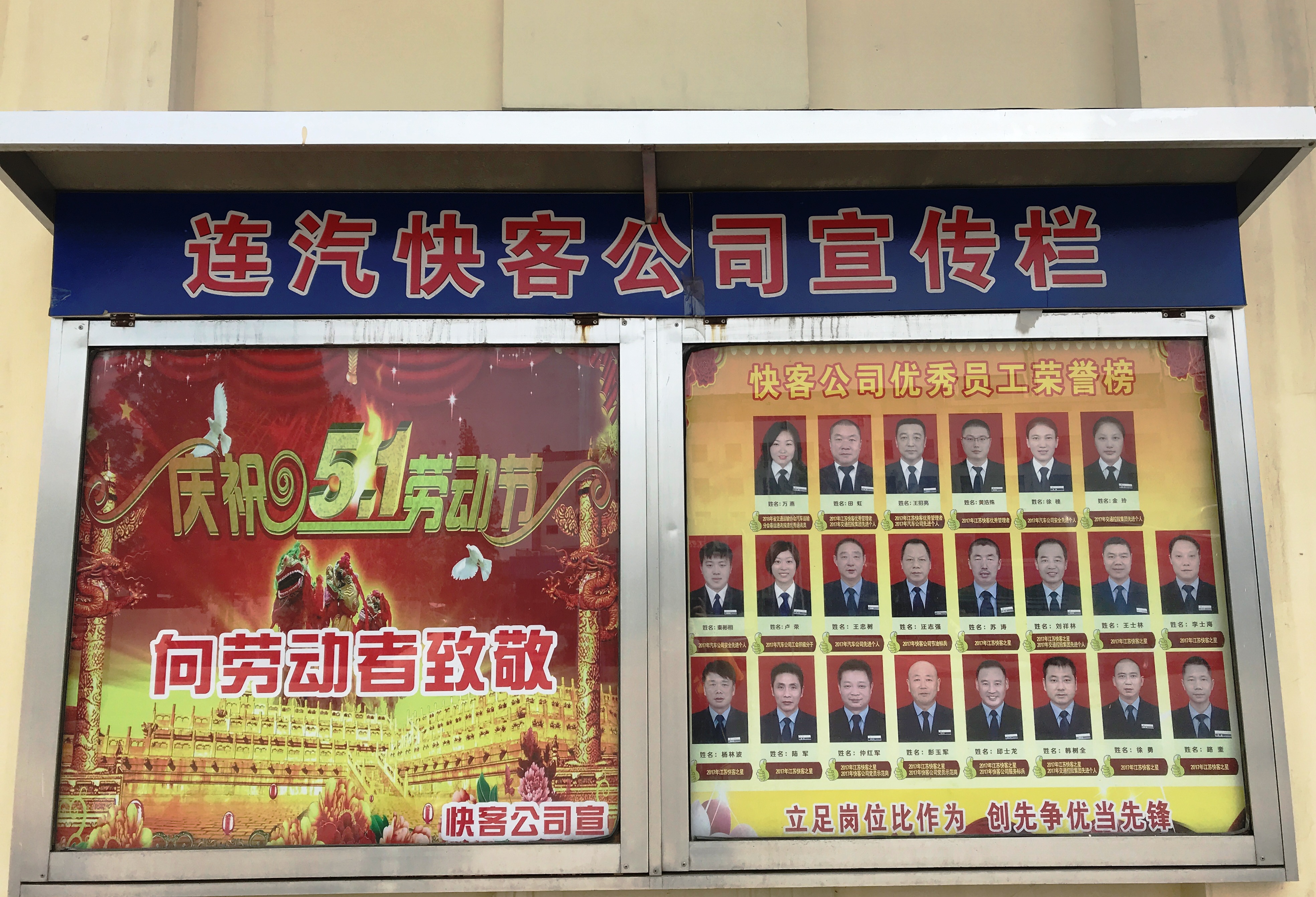 2018年4月16日,快客公司为庆祝“五一”劳动节,向劳动者致敬,制作了快客公司优秀员工荣誉榜一期,宣传2017年在推动公司发展的进程中,涌现出的万燕、田虹、王招亮、王忠树、汪志强、苏涛等一批突出先进模范。他们在自己平凡的岗位上,以实际行动诠释了爱岗敬业、争创一流,艰苦奋斗、勇于创新,淡泊名利、甘于奉献的伟大精神。