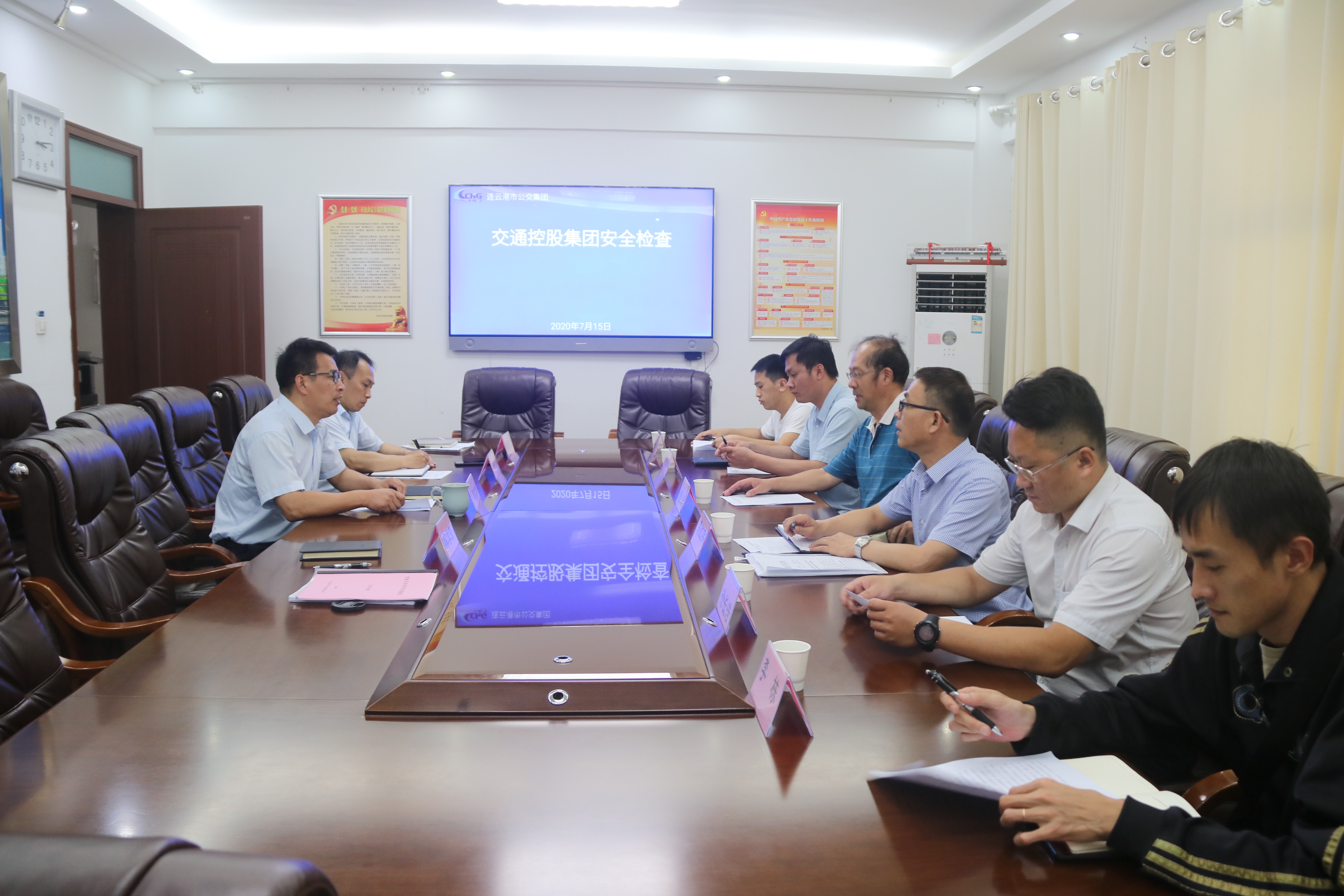 2020年7月16日下午,交通控股集团副总经理孙超带领安监部部长茅红兵一行七人到公交集团督查贵州安顺公交车坠湖事件发生后,公交集团安全生产自查自纠工作开展情况及防控措施落实情况,公交集团党委书记、总经理周文君、分管安全副总经理王学兵、安全保卫部部长于亮陪同检查。