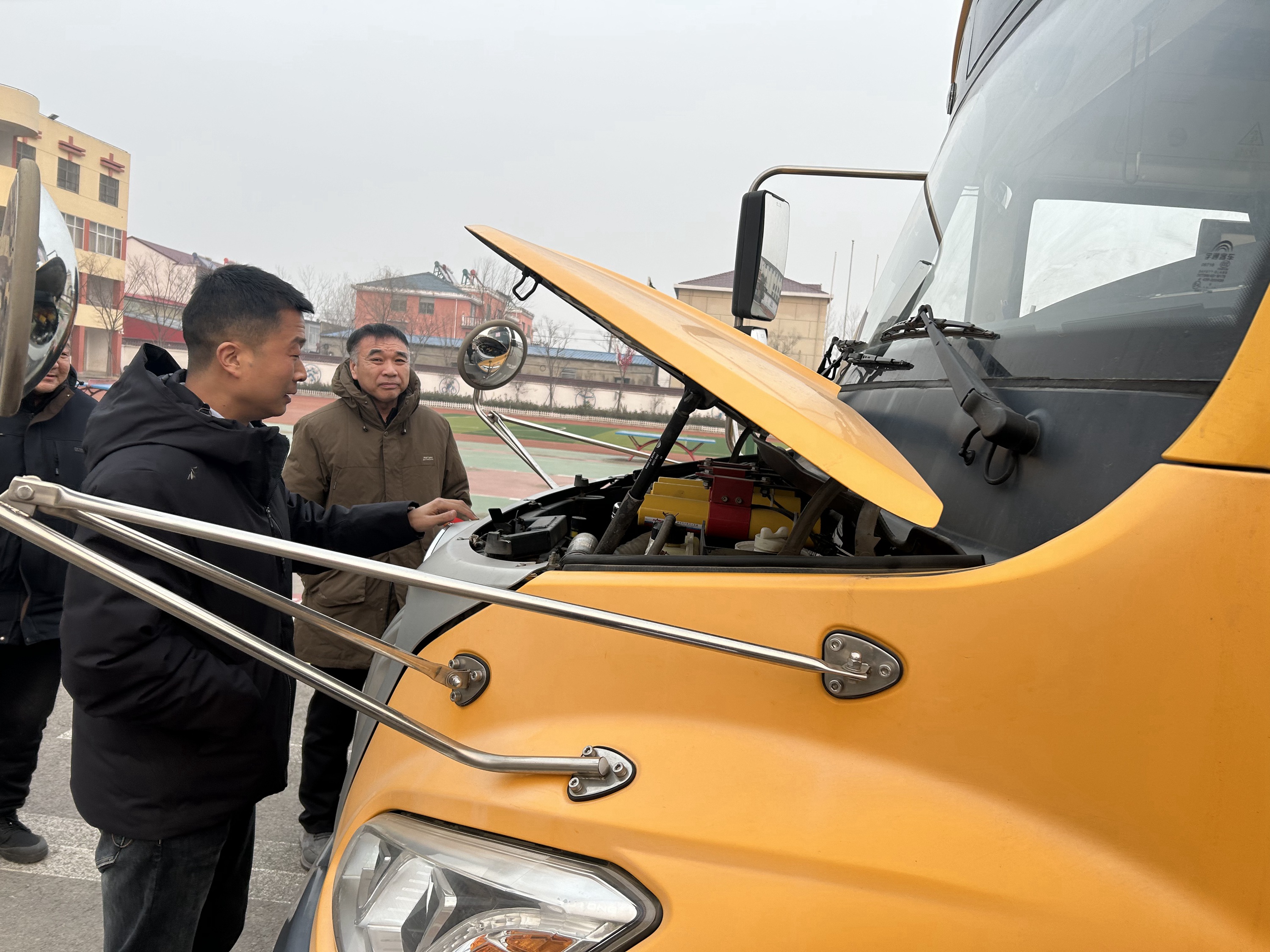 针对燕尾港、圩丰、鲁河、同兴等两不见面车辆,欣达校车负责人亲自带队到各乡镇对车辆进行安全检查。实施“一车一档、从严核验”机制;逐一检测制动、转向、悬挂等核心系统老化情况,细致排查线路磨损、车身锈蚀等潜在隐患,严格核查灭火器、应急出口等安全设施的完备性,确保校车车辆“零隐患”,以“严标准、实举措”守住校车出行安全底线。