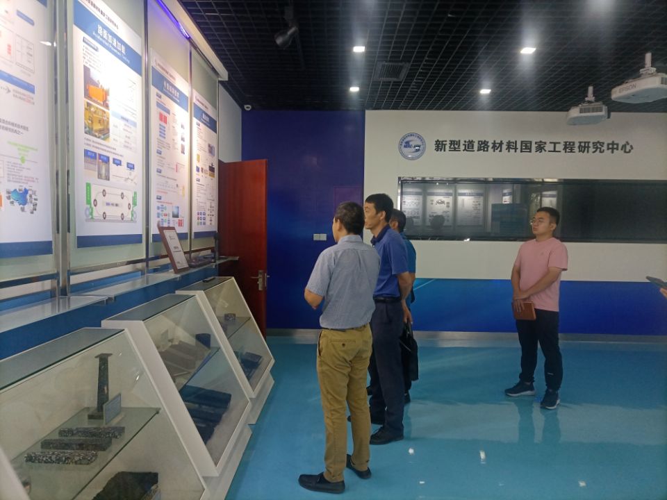 在新型道路材料国家工程研究中心,双方就桥面铺装技术、智能检测、智能施工、优化沥青混凝土配合比等科研课题进行了广泛的交流,并就下一步合作达成了初步意向。新型道路材料国家工程研究中心由苏交科集团联合东南大学、中国石化炼油销售有限公司建设,新型道路材料国家工程研究中心获纳入首批新序列管理的国家工程研究中心(新材料领域),是国家发展和改革委员会以服务国家重大战略任务和重点工程实施为目标,组织具有较强研发综合实力的企业、科研单位、高等院校等建设的研究实体。