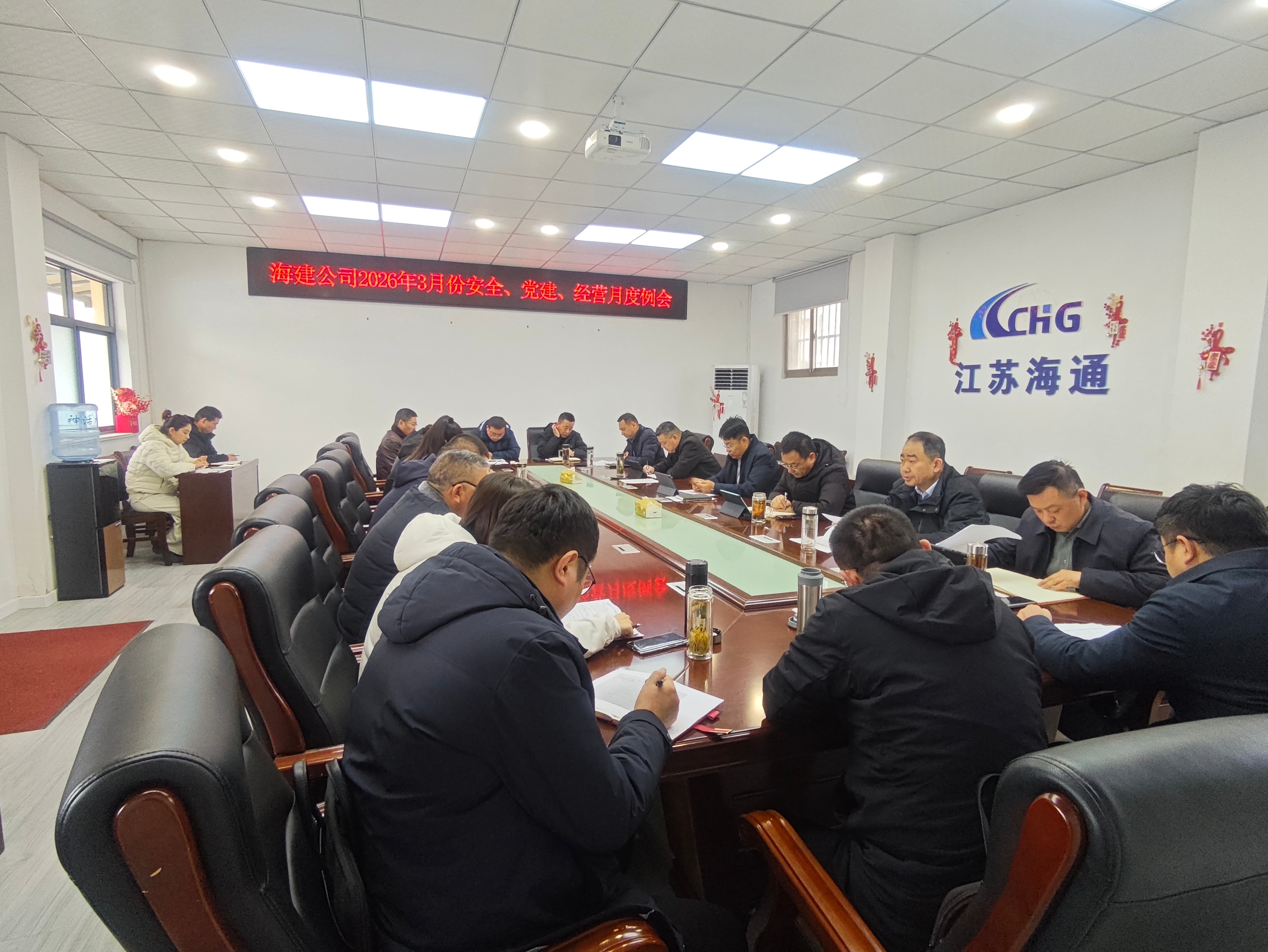 3月3日,江苏海建公司在一楼会议室召开3月份安全、党建、经营月度例会,统筹推进2026年各项工作落地见效,确保实现首季“开门红”。公司领导班子成员、各单位及部门主要负责人参会,会议由总经理徐其翔主持。