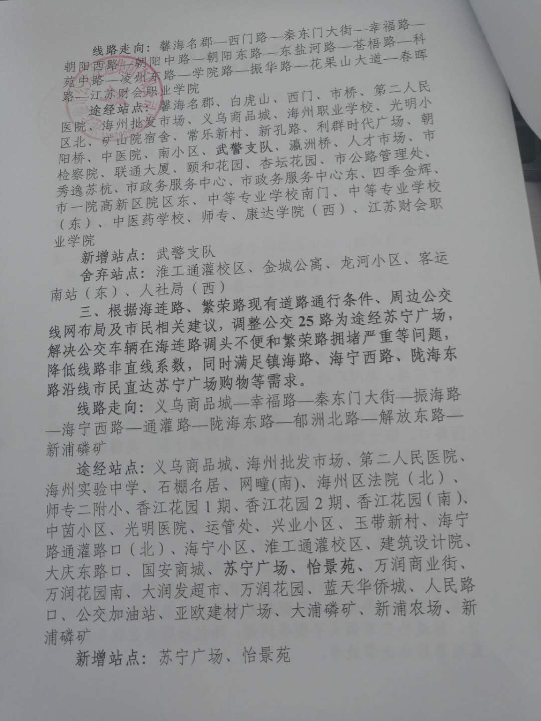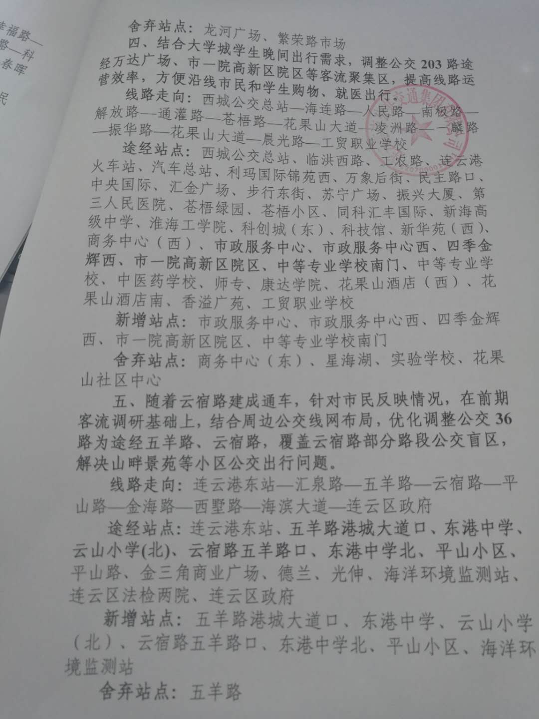 新增站点:市公交集团、党校、市政府东门、市政府、文化艺术中心、联通大厦、市检察院、博纳花园、苍梧小区西门、东方银行、兴业时代花园、大润发、万润花园、博威江南明珠苑、郁洲公园东、郁洲公园(北)、银泰花苑、利玛国际锦苑、汽车总站、连云港火车站、石油公司、电视台(西)、园林花园、华北桥、幸福中央