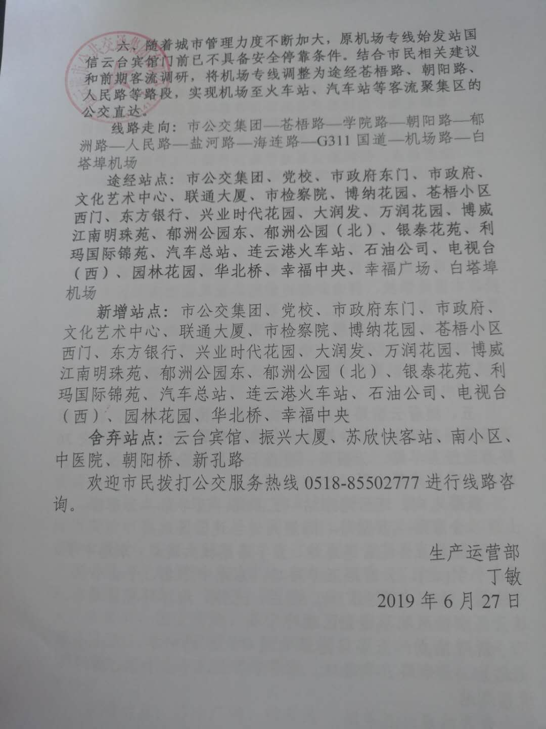 欢迎市民拨打公交服务热线0518-85502777进行线路咨询。