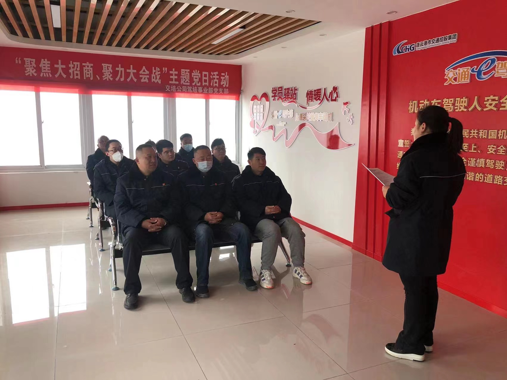 为深入学习贯彻党的二十大精神,将交培公司驾培事业部党员群众思想、行动统一到市委“招商引资、项目建设大会战”部署上来,2月22日下午,驾培党支部组织党员、积极分子、群众学员代表前往浦南校区“交通e驾”先锋学员驿站开展“聚焦大招商、聚力大会战”主题党日活动。