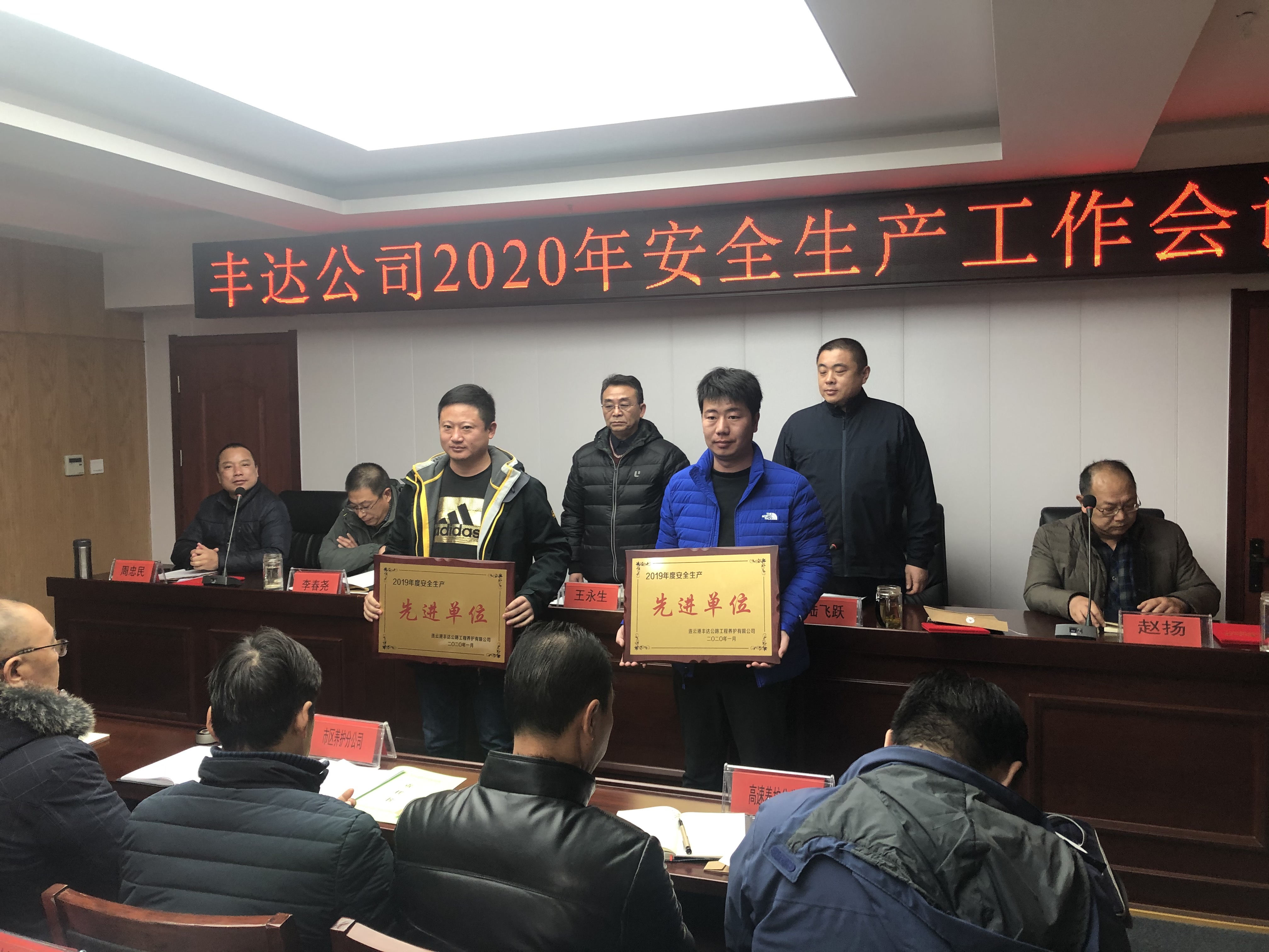 2020年1月9日上午,丰达公司在公司总部会议室召开2020年安全生产工作会议。公司领导、安全员、先进个人代表共50人参会。