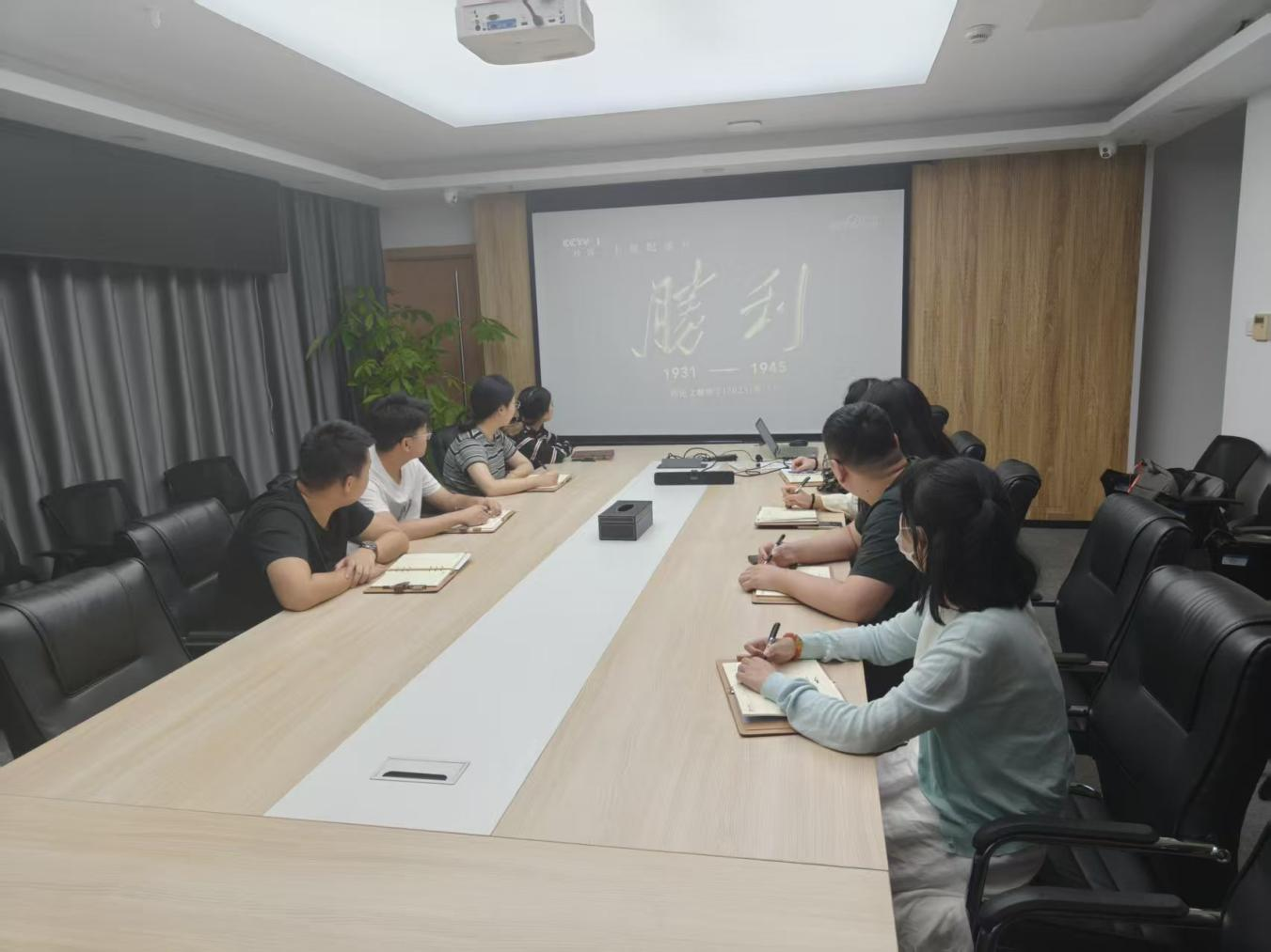 活动中,全体团员共同观看了《胜利》纪录片片段。《胜利》以“九一八事变”为起点,真实展现了中国人民抗日战争艰苦卓绝的光辉历程,生动刻画了卢沟桥事变、平型关大捷、敌后根据地斗争等重大历史事件。该片没有刻意渲染宏大的战争场面,而是通过真实的历史影像、亲历者的口述,还原了无数普通人在时代洪流中为了守护家国挺身而出的瞬间。他们或许是扛枪冲锋的战士,或许是支援前线的百姓,没有惊天动地的豪言壮语,却用坚守与牺牲诠释了“团结”的重量——正是千万人的同心协力,才汇聚成冲破黑暗、赢得胜利的磅礴力量。