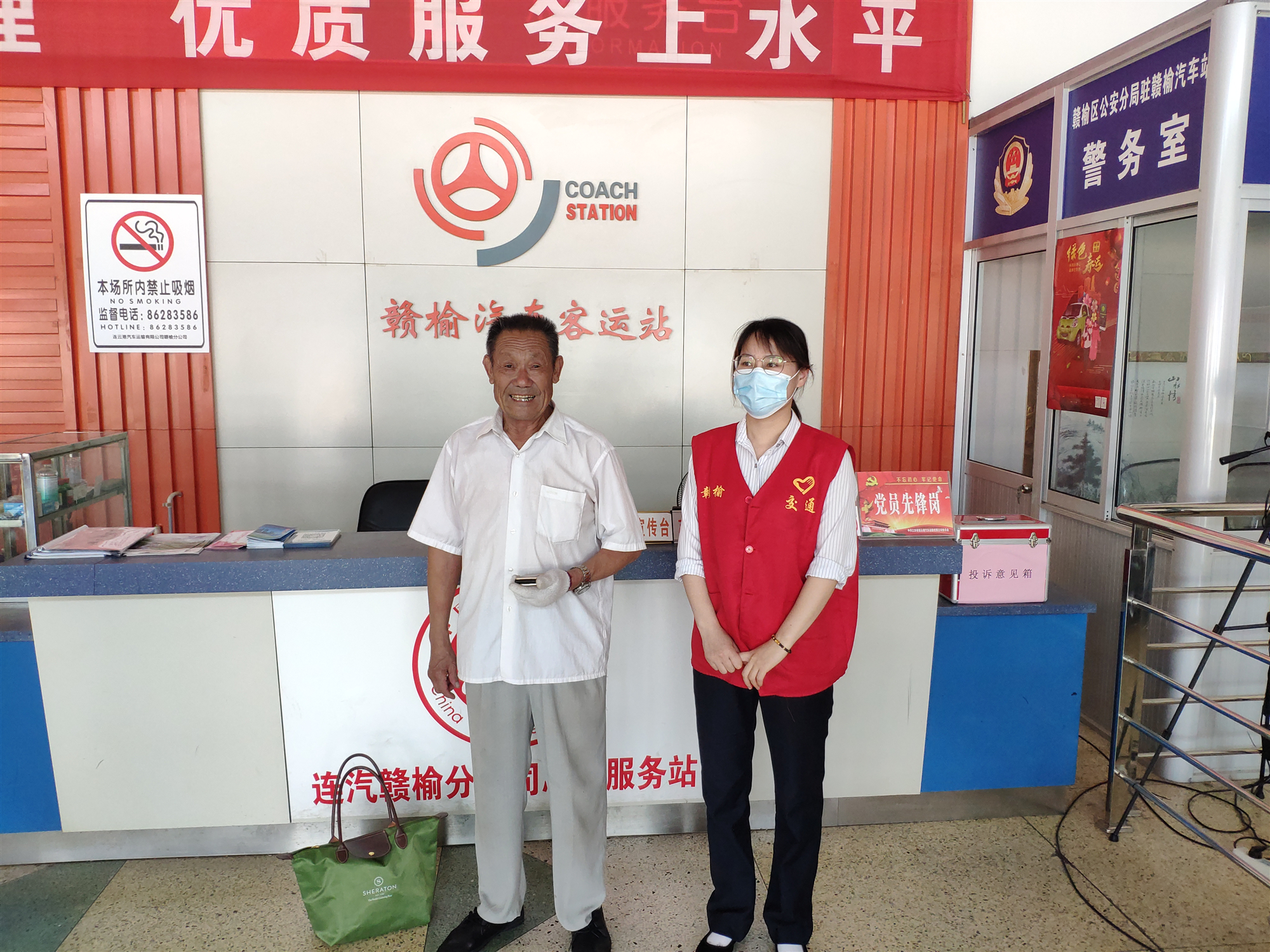 老人紧紧抓住赵君兰的手,激动地无以言表。老人夸奖赵君兰是心地善良的好孩子,感谢她的拾金不昧,也感谢赣榆汽车站。