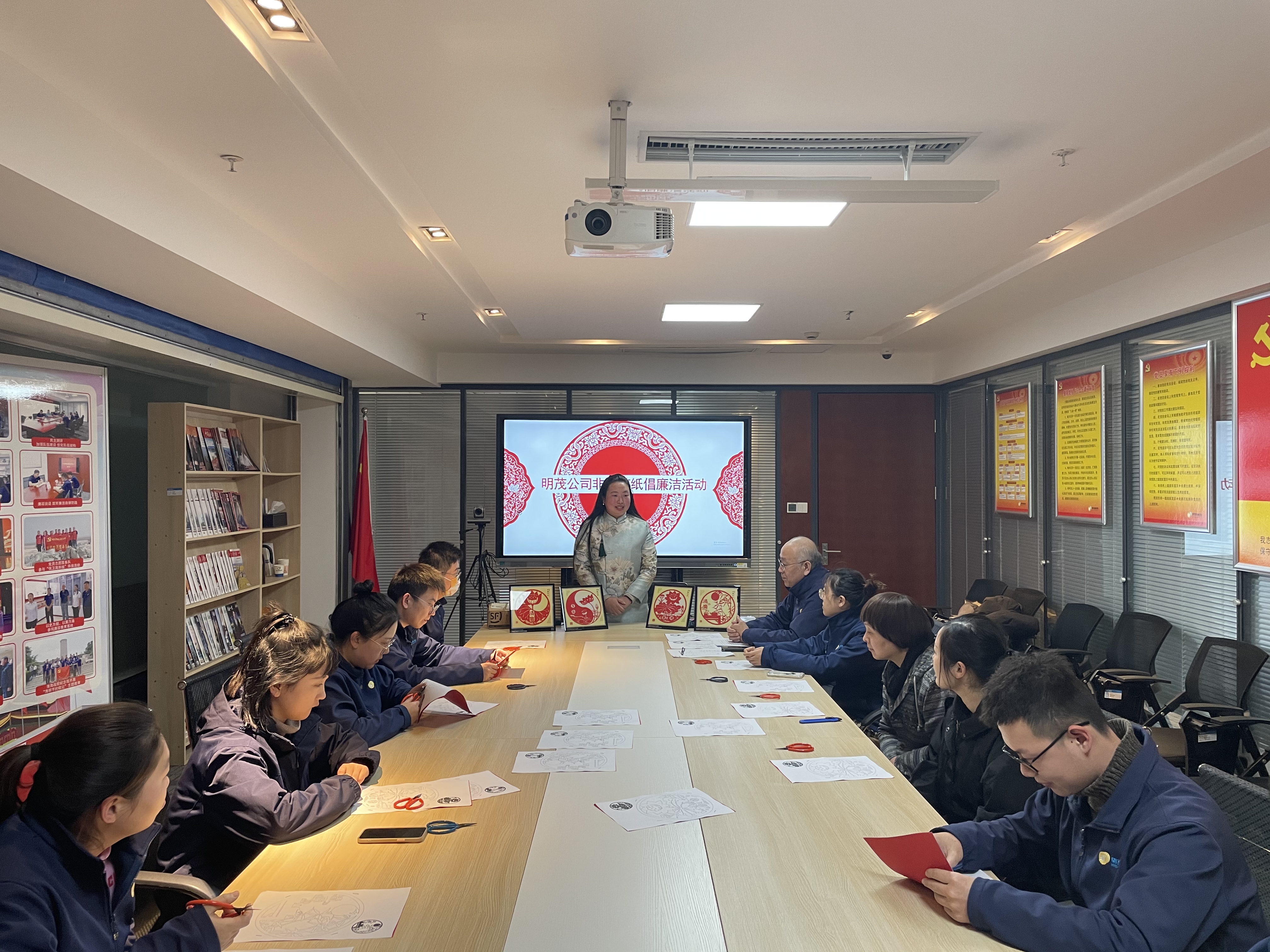12月22日下午,明茂公司纪检机构开展了以“剪纸倡廉,廉润初心”为主题的非遗剪纸倡廉洁活动。活动邀请了江苏省“三带”名人、江苏省第十三届省人大代表、连云港市非物质文化遗产剪纸项目代表性传承人管艳老师前来授课。