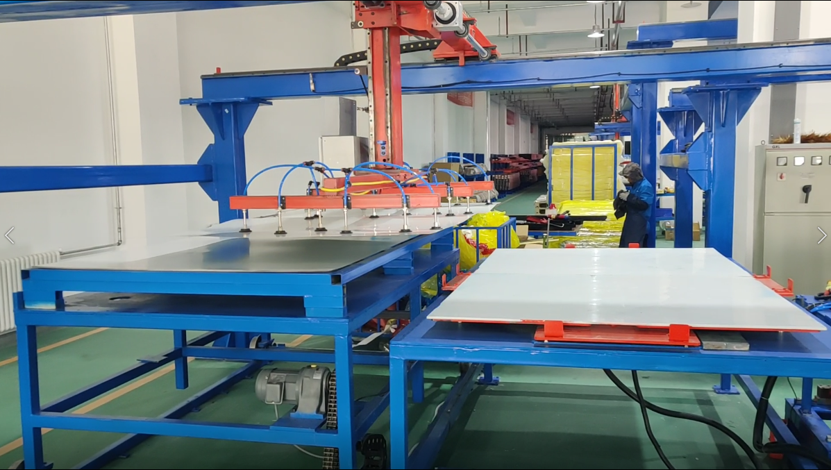 大型平板太阳能集热器生产线未改造之前,单一平板翻转动作需要多名工人配合完成,海宏科技的大平板自动化生产线实现了全自动上料、焊接、翻转、码垛等一系列智能控制,仅需少量工人操作系统完成;且系统界面简洁,两天便可完成操作培训。依托大平板自动化生产线智能控制,能最大程度上为客户降低人工成本、节省生产时间、提升产品质量,从而更好满足企业不断扩大的市场需求。