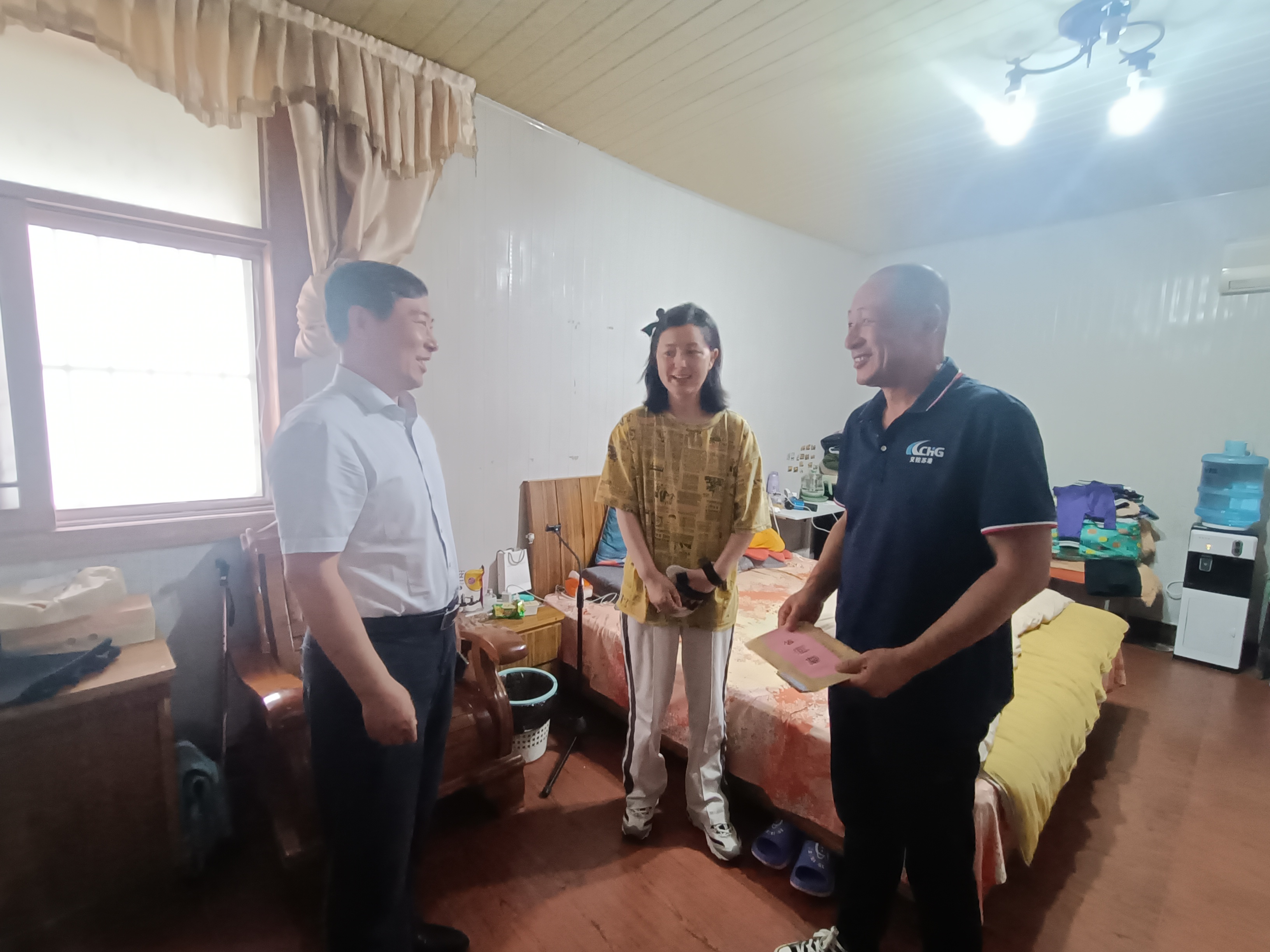 6月25日下午,交通控股集团党委副书记、工会主席陈金师一行前往苏港检测中心困难党员家中慰问。