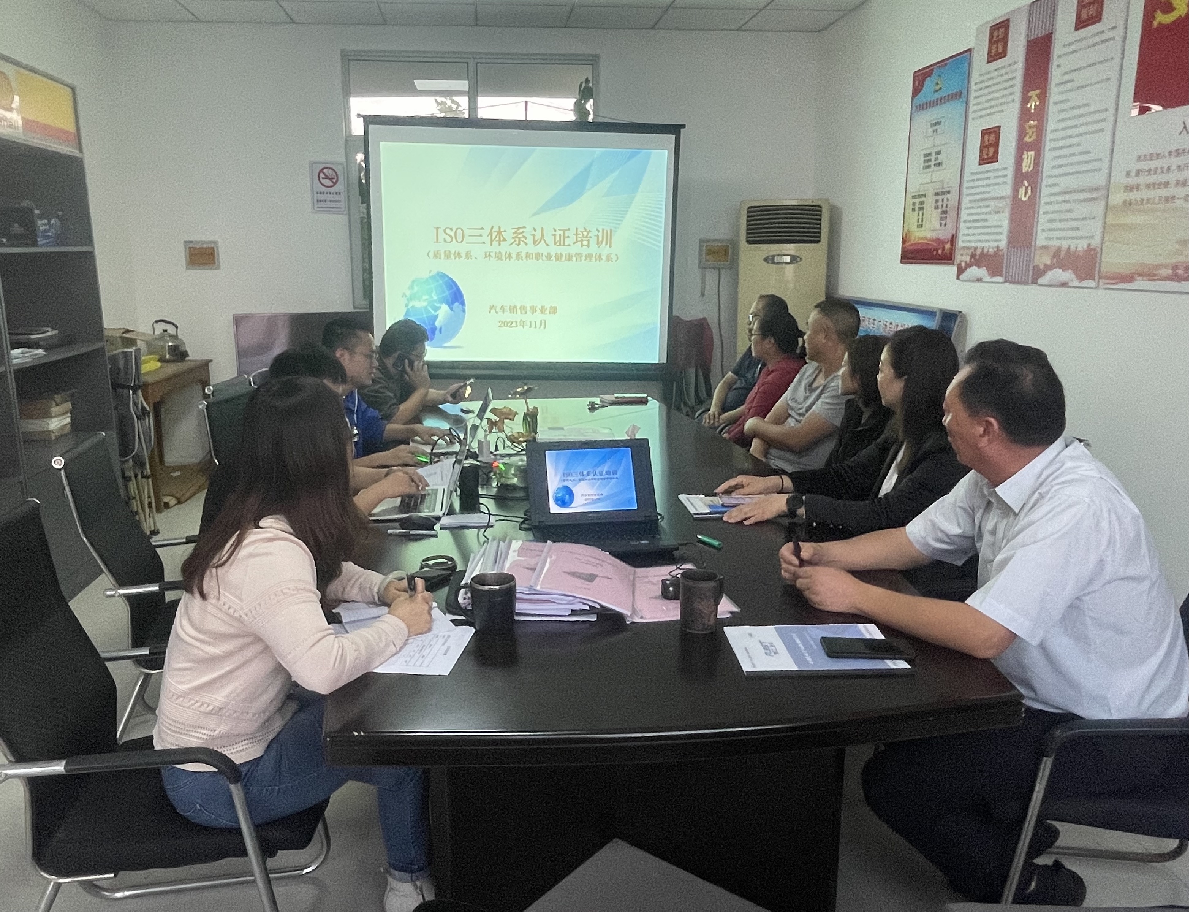 11月2日至11月4日,汽服公司东汽销售公司组织开展ISO(质量、环境、职业健康安全)三体系认证知识培训。公司各部门负责人、管理人员、专业技术人员参加了培训。
