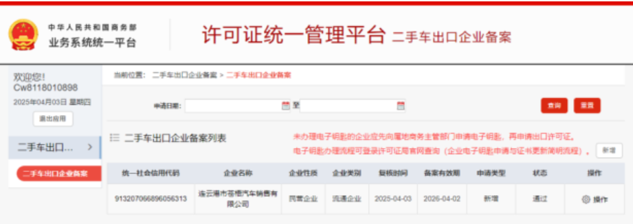 4月3日下午,汽服公司权属汽车销售事业部苍梧销售公司传来喜讯,经过数月的精心筹备与积极申报,成功获得二手车出口资质。这一资质的获批,标志着汽服公司正式进军国际二手车市场,为公司出口业务发展开辟了新的增长路径。