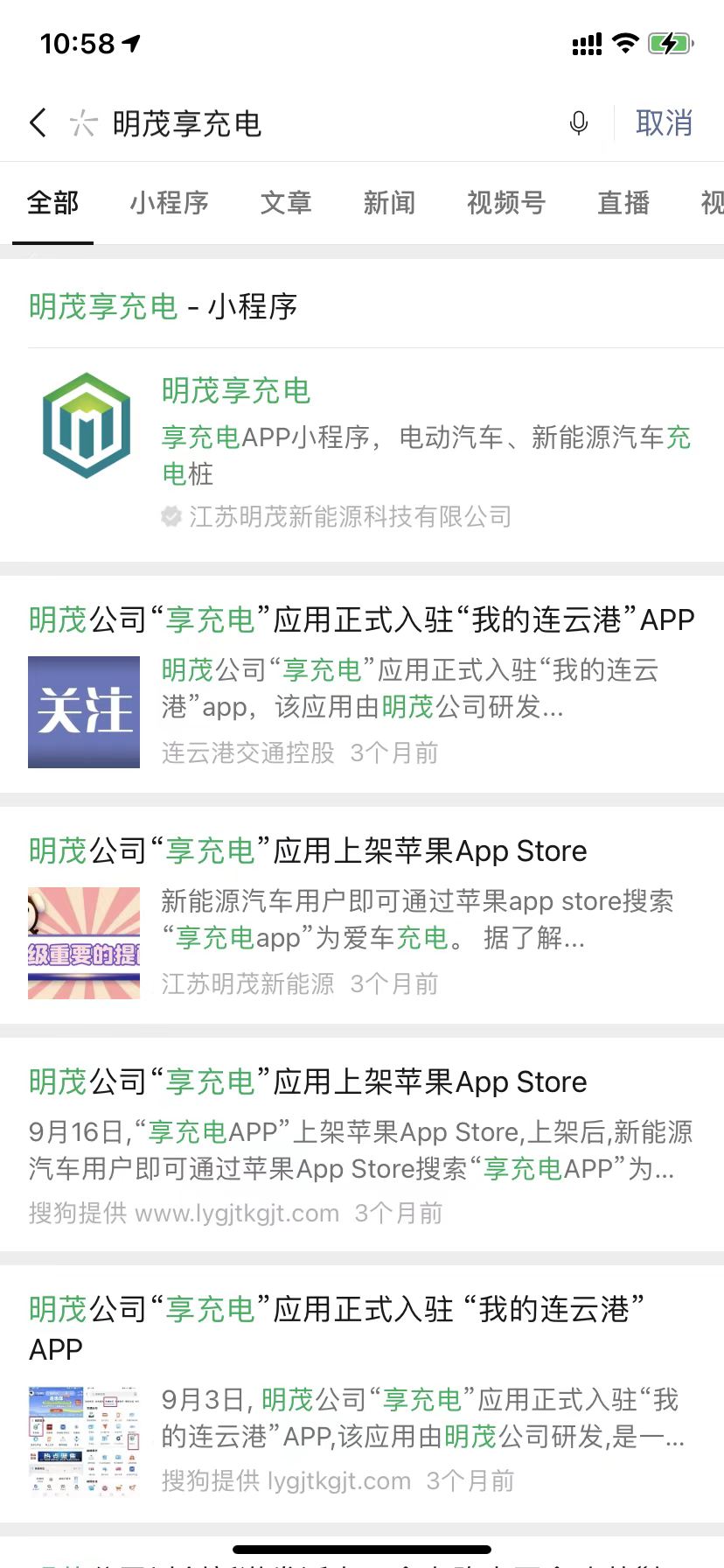 今年以来,明茂公司积极拓宽“享充电”APP覆盖渠道,从在“我的连云港”APP中上线“享充电”到苹果APP Store上架再到本次微信小程序的上线,表明了明茂公司始终从用户角度出发,提供更为全面、便捷和高效的充电服务。