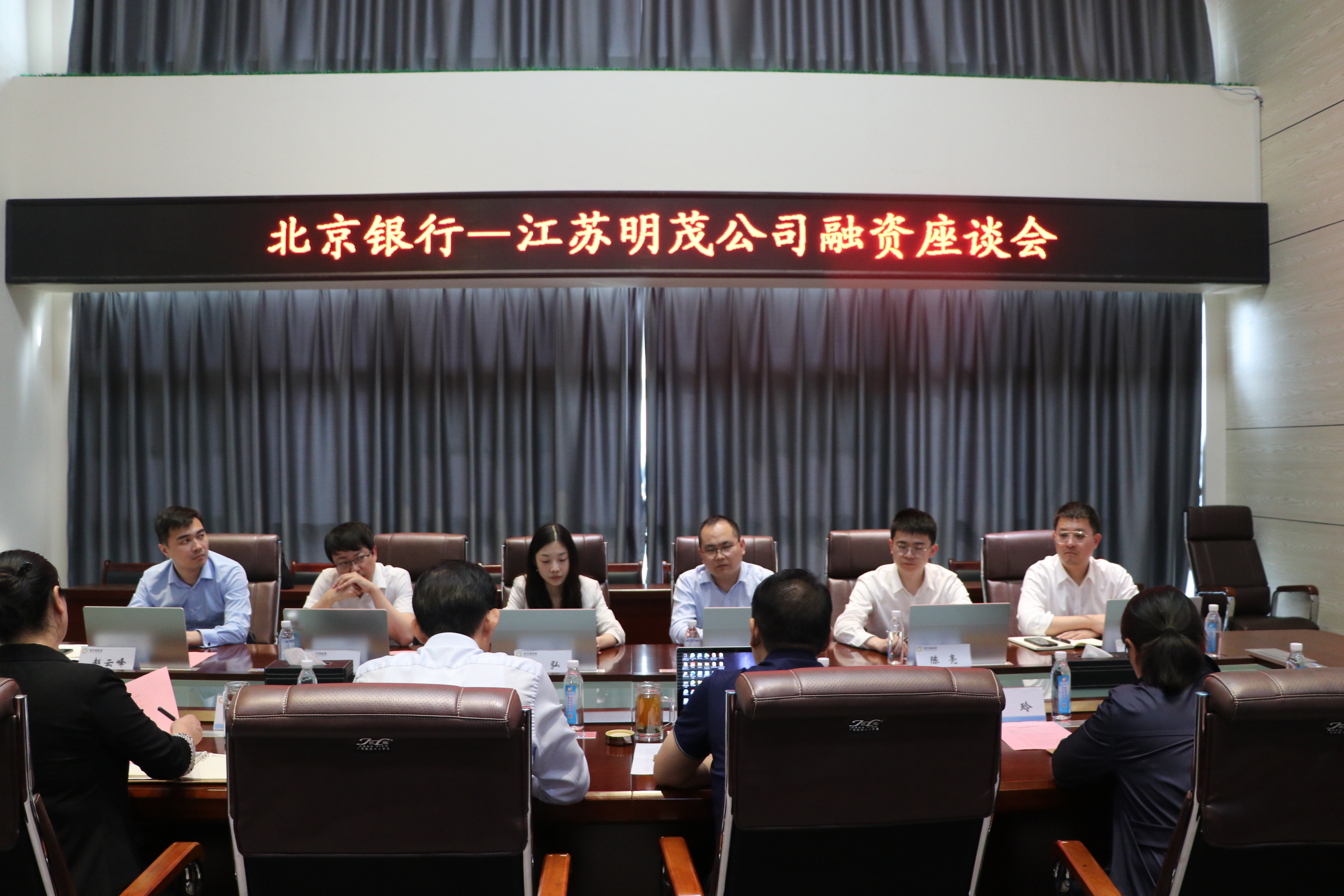 6月7日,明茂公司召开重点项目融资座谈会,集团副总经理、明茂公司董事长王中永、明茂公司党总支书记、总经理袁军,明茂公司副总经理、工会主席蒋月琴参加会议,北京银行南京分行信用审批部总经理韦军及相关部门负责人等出席座谈。