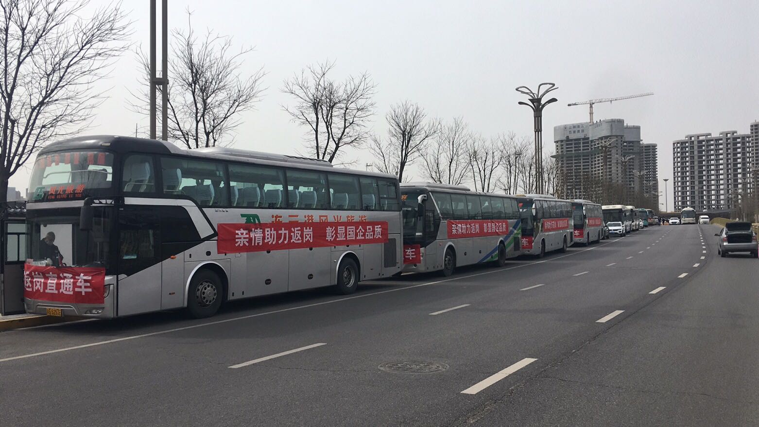 3月10日早上7点多,四辆悬挂着返岗直通车横幅的连汽快客大客车安全驶入位于连云港开发区宿城的中国核工业建设有限公司职工宿舍楼,86名返连上班的农民工兴高采烈地从车上下来,这是快客公司根据中国核工业建设有限公司需求,在做好自身防控措施的前提下,避免复工人员交叉感染,推出的“点到点”上门接送业务,同时开启了首批外省民工返连的返岗复工路。