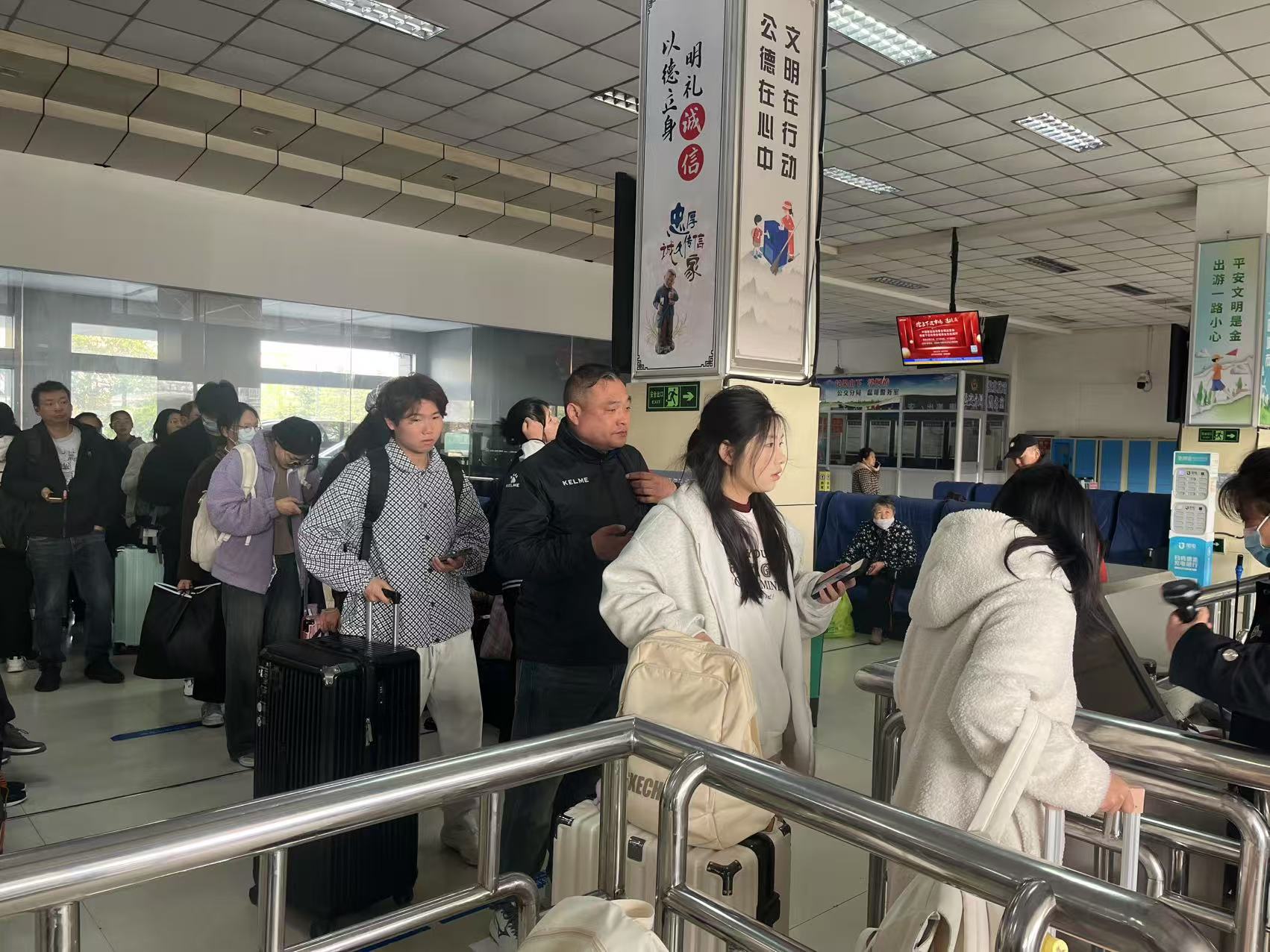 二、优化运力配置,提升服务品质。公司提前对清明期间旅客出行需求展开研判,同时与周边城市建立动态运力调度机制,借助大数据实时掌握客流变化,灵活调整发车班次与线路。各客运站通过多种渠道发布班次信息,安排志愿者在站内提供引导、咨询服务,帮助旅客合理规划行程。清明假期,公司共投入110台运力,各客运站及602、603公交专线累计发送旅客2.4万人次,有效满足了旅客多样化出行需求。高铁站的“雷锋车”驿站为应对客流高峰,主动延长服务时间,累计投入近百名志愿者,为旅客解决出行“最后一公里”难题。