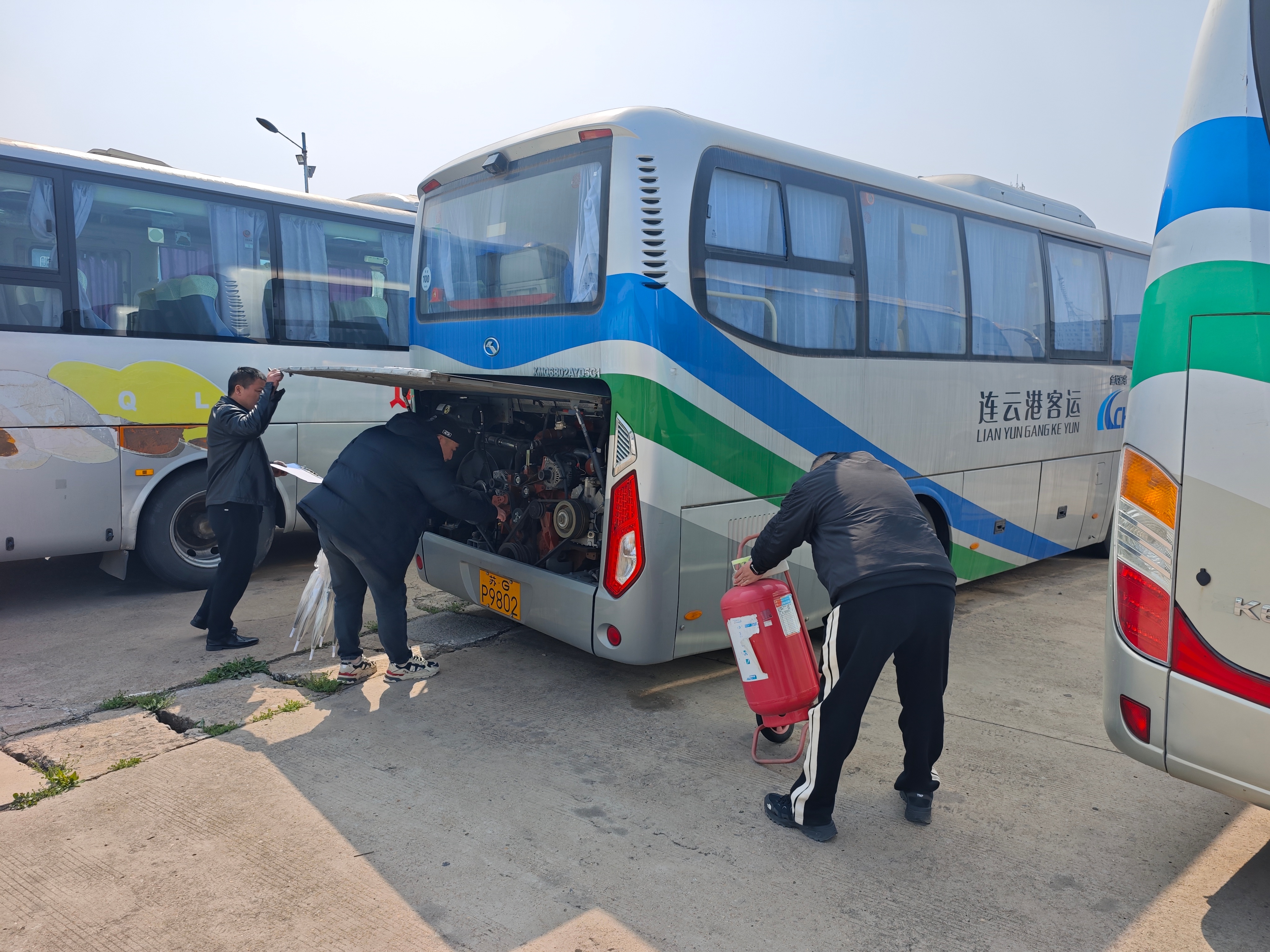 客运车辆安全专项检查,重点对车辆制动系统、灯光照明、轮胎状态、灭火器材、安全锤等关键部位逐项排查核验,全面排查车辆机械故障与安全设施隐患,确保车辆性能完好、安全装备齐全有效。