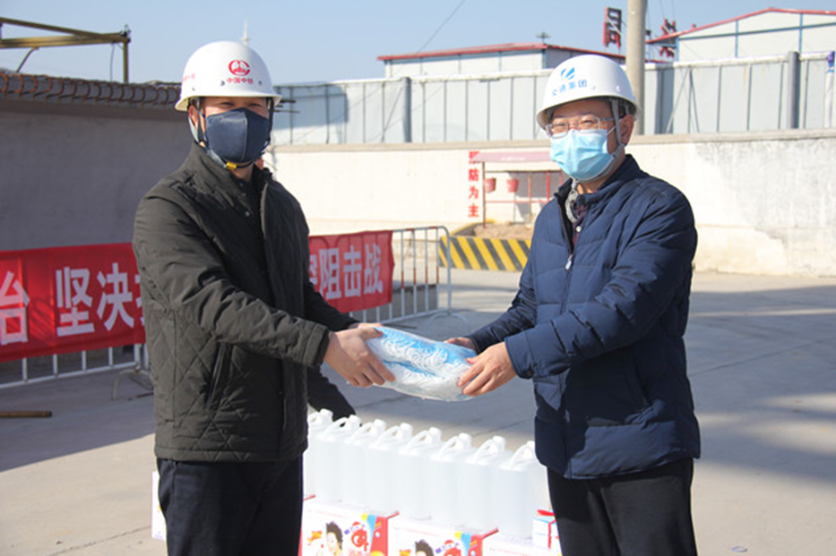 同时,集团领导班子在抗击疫情一线做表率、走在前、冲在先,急项目之所急,急员工之所急,加强对防疫一线的支持。3月5日,集团领导及工会走访已复工的连霍高速新墟互通新增匝道工程建设现场,及时协调解决复工中存在的问题,并送去一次性口罩500个,84消毒液5箱,医疗酒精10桶等防护物资。