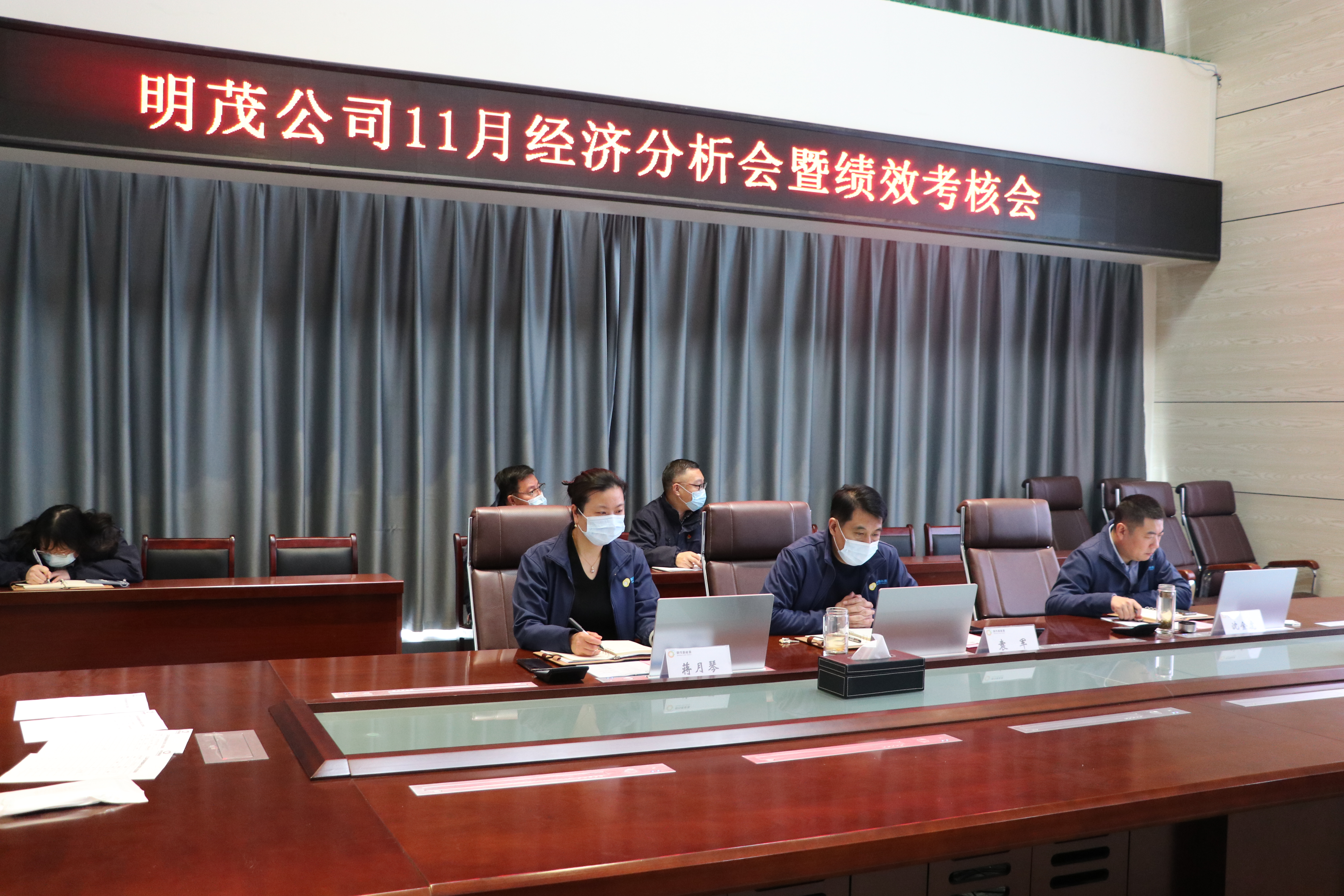 12月12日上午,明茂公司召开2022年11月份经济分析会暨绩效考核会,公司领导班子成员出席会议,公司各部门主要负责人及相关人员参加会议,会议由公司党总支书记、总经理袁军主持。