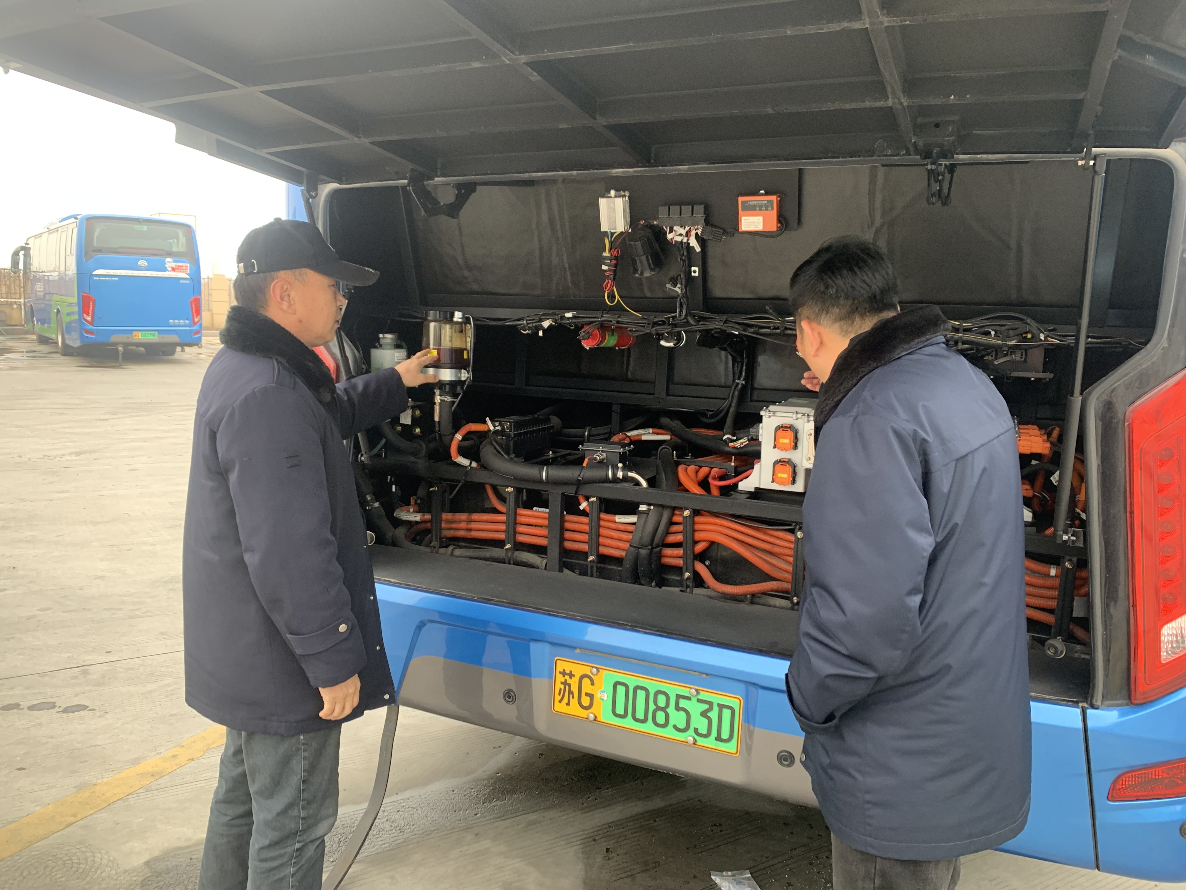 针对新能源公交车,检查组重点对高压线束、驱动电机、电池舱等核心部件进行细致排查,逐一检测线路老化、接口松动及渗漏隐患,确保动力系统稳定可靠;对于燃油车辆,则全面检测发动机工况、油路管路密封性,有效防范因春季气温变化引发的各类故障。同时,工作人员对车辆的制动系统、转向系统、灯光电路以及轮胎磨损情况进行了重点调试和更换,尤其对刹车灵敏度、转向间隙进行精准调整,及时更换老化轮胎与破损线路,确保车辆机械性能处于最佳状态。此外,安全装置的检查也是本次换季保养的重要一环。检查人员逐一核查应急开关、灭火器、逃生锤等安全设施,保证应急功能完好可用。结合春季多风、多沙尘的气候特点,公司还对车辆进行了机油、防冻液的季节性更换,并清洁空调滤芯及通风系统,提升车辆在特殊天气下的适应能力,为乘客营造更加舒适、安全的乘车环境。
