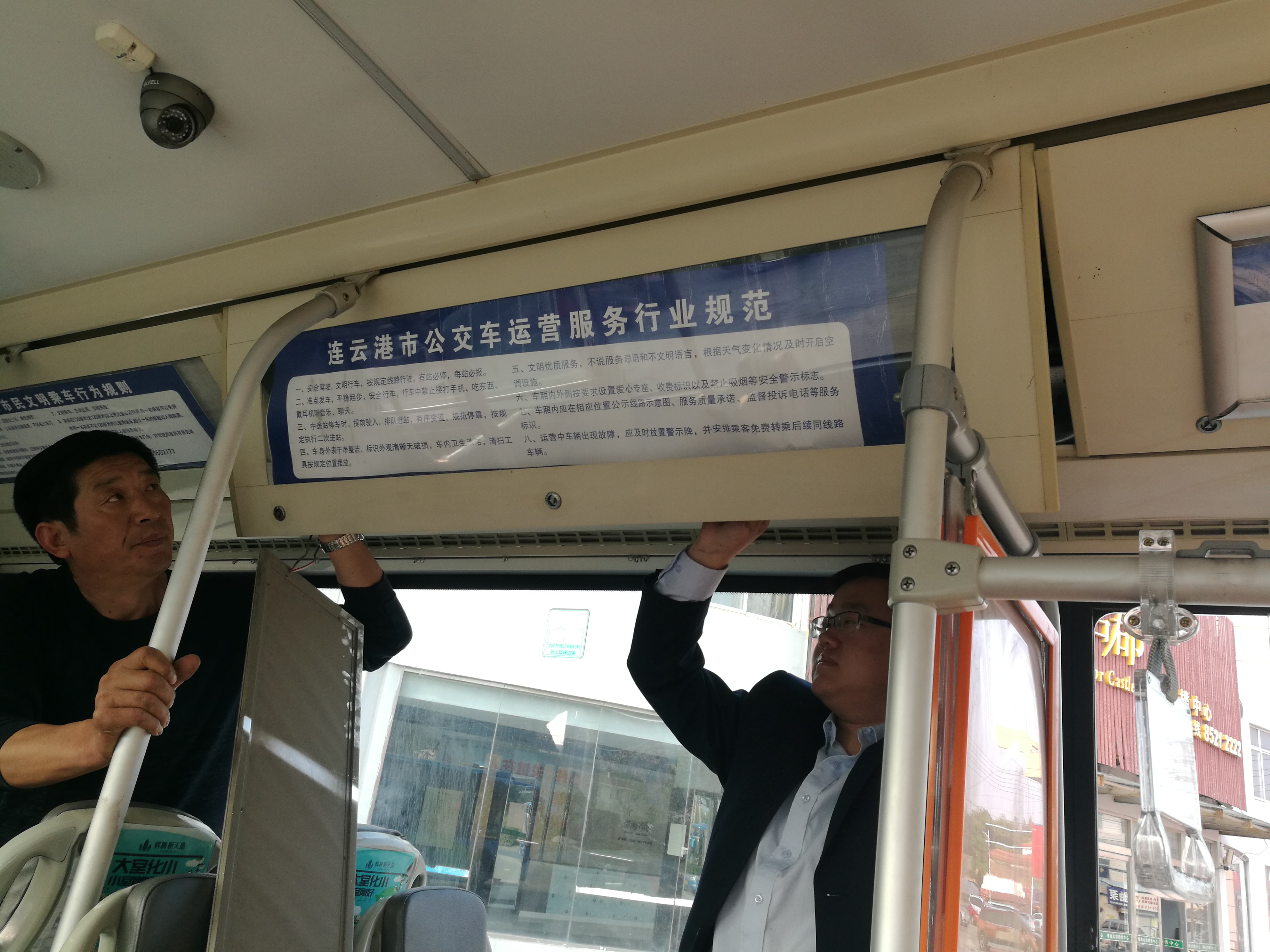 此次安装的“连云港公交运营行业规范”标识旨在进一步对市民宣传公交服务规范,督促驾驶员提高整体服务水平,打造优秀的公交形象,标识中对市民经常提出的问题,如“空调开启”、“二次进站”皆做出了详细的规定。