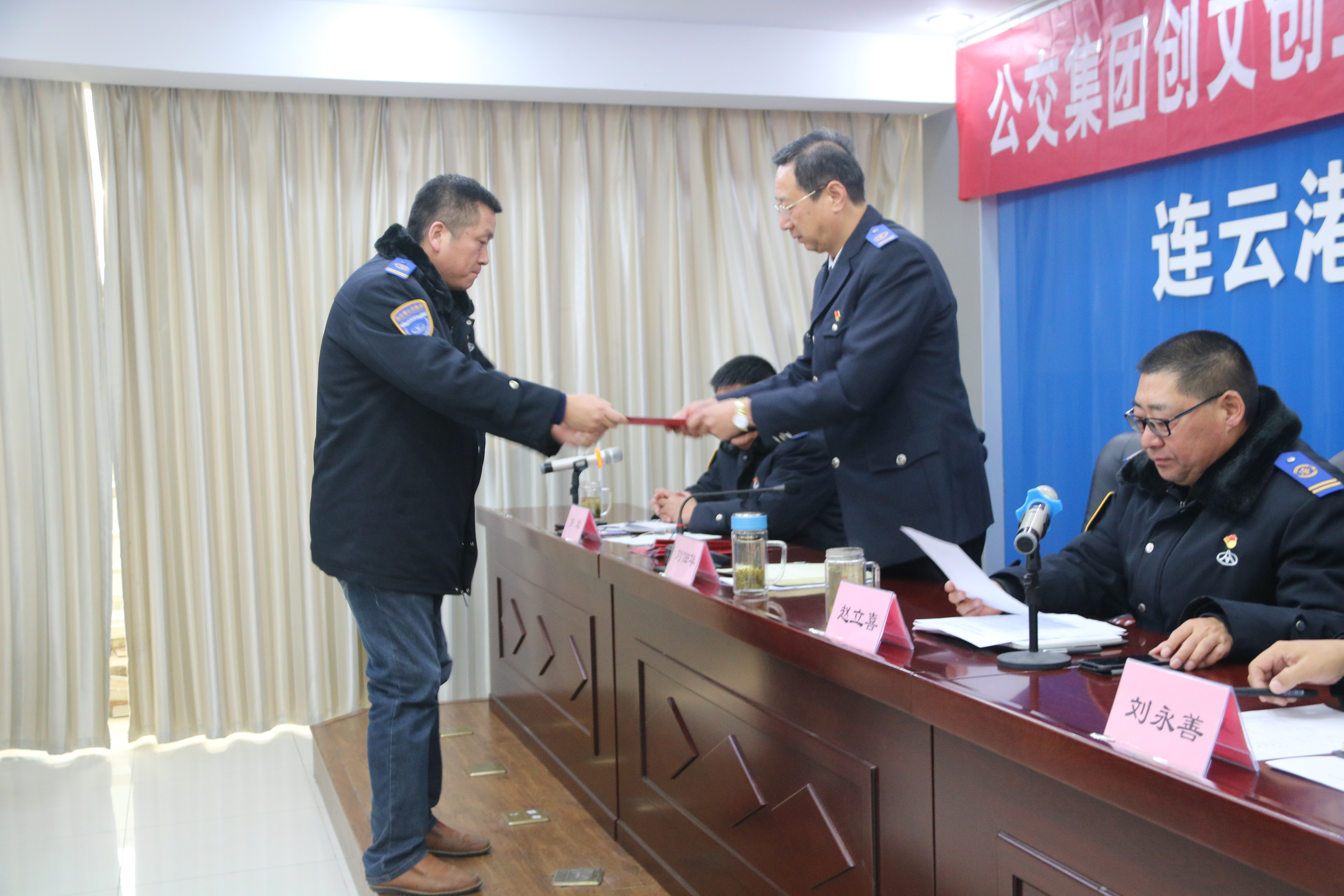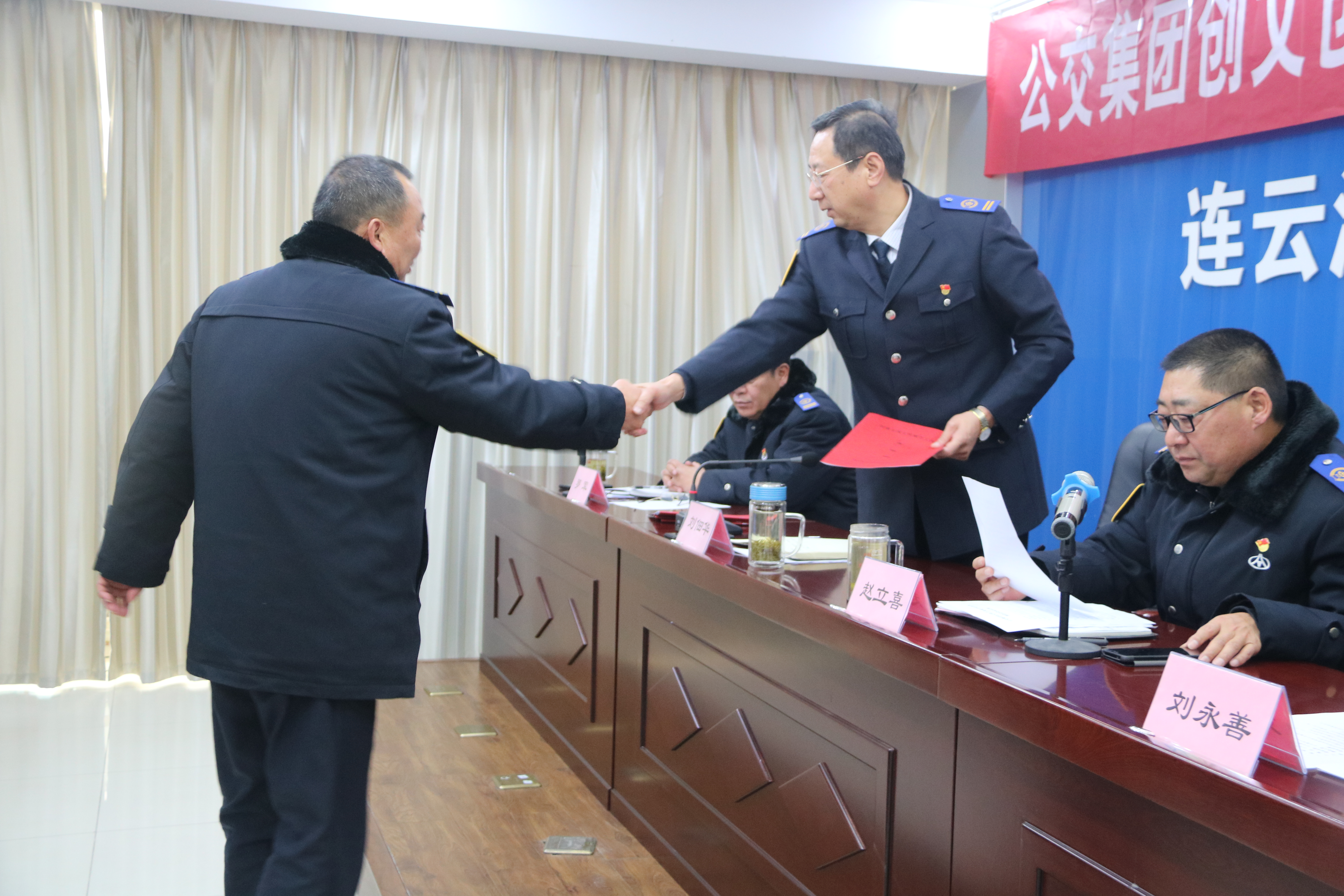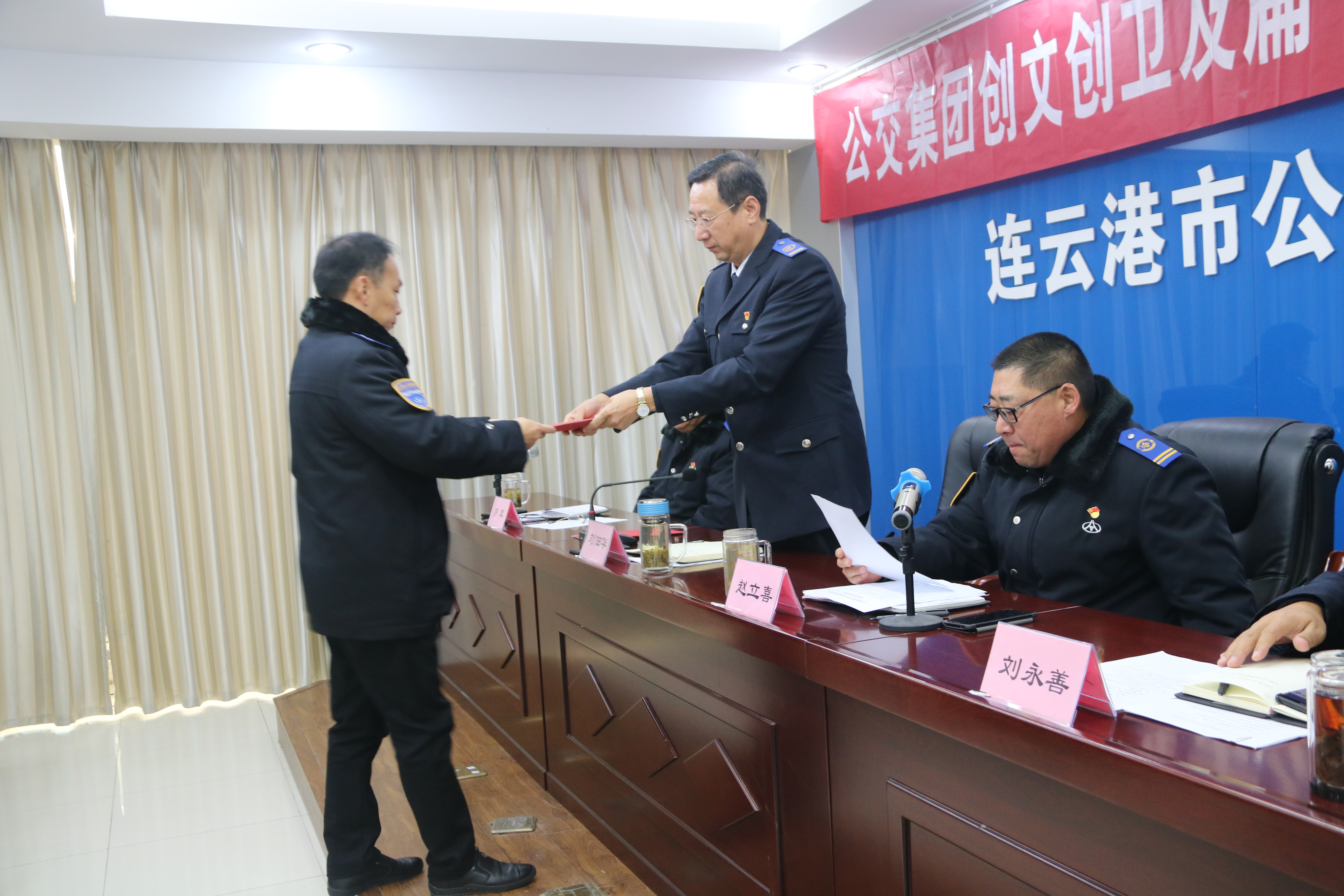 11月20日下午,连云港市公交集团召开创文创卫及扁平化改革推进会,公交集团领导班子成员、中层以上干部、集团三级干部99人参加了会议,推进会由集团副总经理赵立喜主持。
