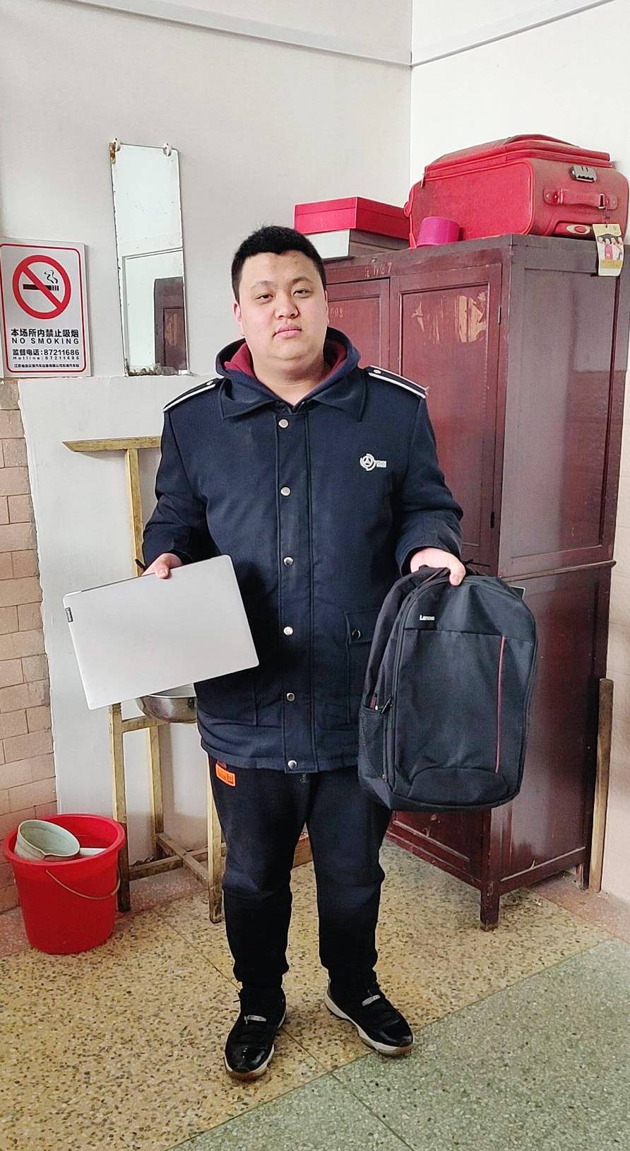 2019年2月21日,东海公司迎来了元宵节后的返程小高峰,候车室内挤满了带着大包小包的旅客们。在此之中,一个无人看管的黑色电脑包引起了站务员薄云飞的注意,他询问了周围的旅客,无人认领。在原地等候一段时间之后,也没有等到失主的到来,最后他把电脑包交到了值班站长手里,当工作人员查看包内物品,除了一台联想笔记本和键盘以外,没有发现任何有效的个人信息线索。工作人员只好将失物妥善保管并试图在候车室内及未发出车辆上寻找失主,经过多方查找,也没有发现失主的身影。
