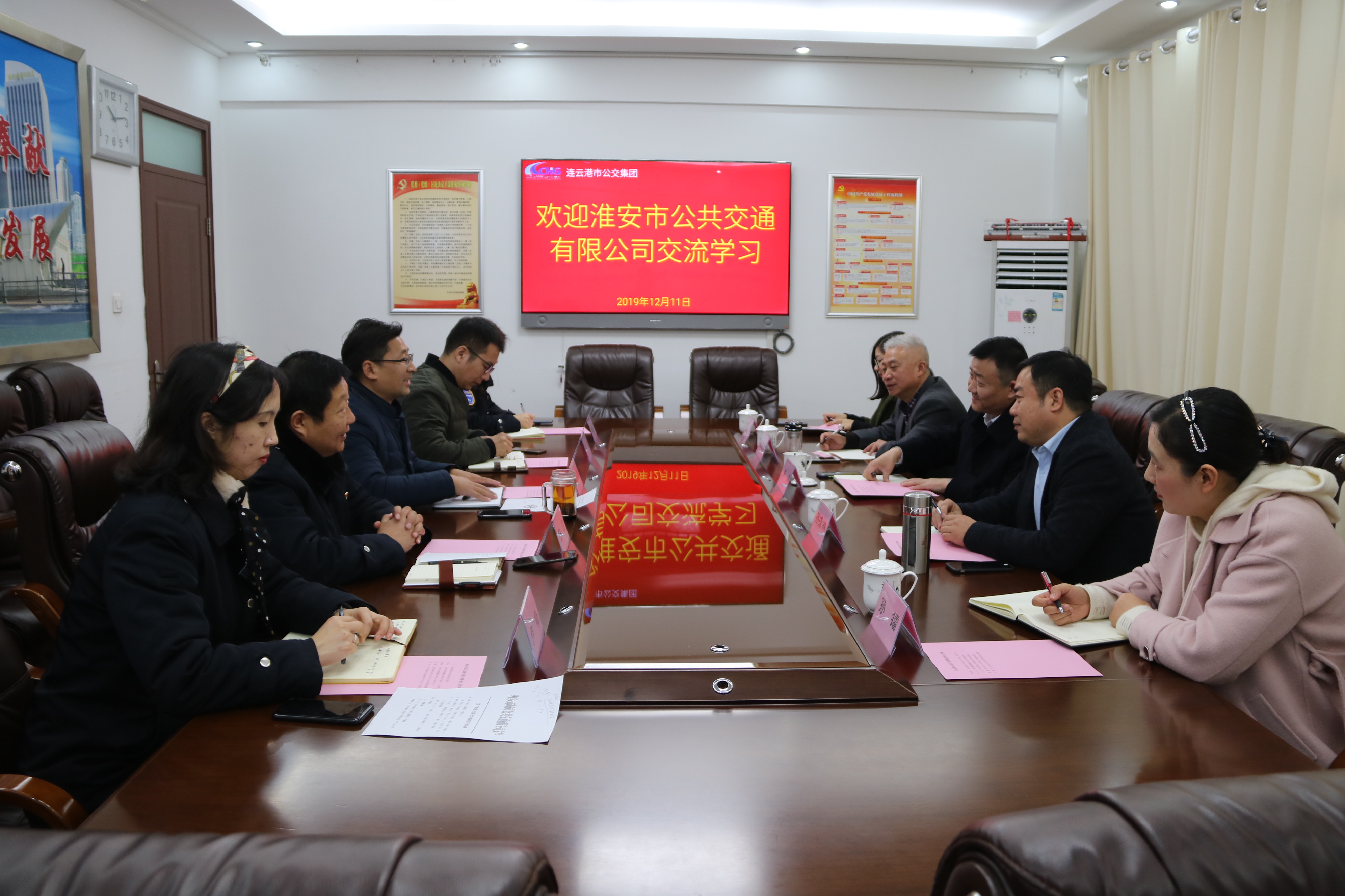 12月11日,淮安市城市公共交通有限公司董事许洋、淮安市江淮智慧出行有限公司董事长、总经理孙淮林一行到连云港市公交集团调研学习。公交集团副总经理刘永善、海通市民卡公司总经理助理陈琛及相关部室主要负责人参与调研。