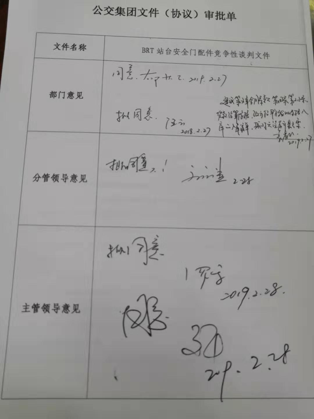 1、招标名称:快速公交BRT站台安全门配件定点采购供应商