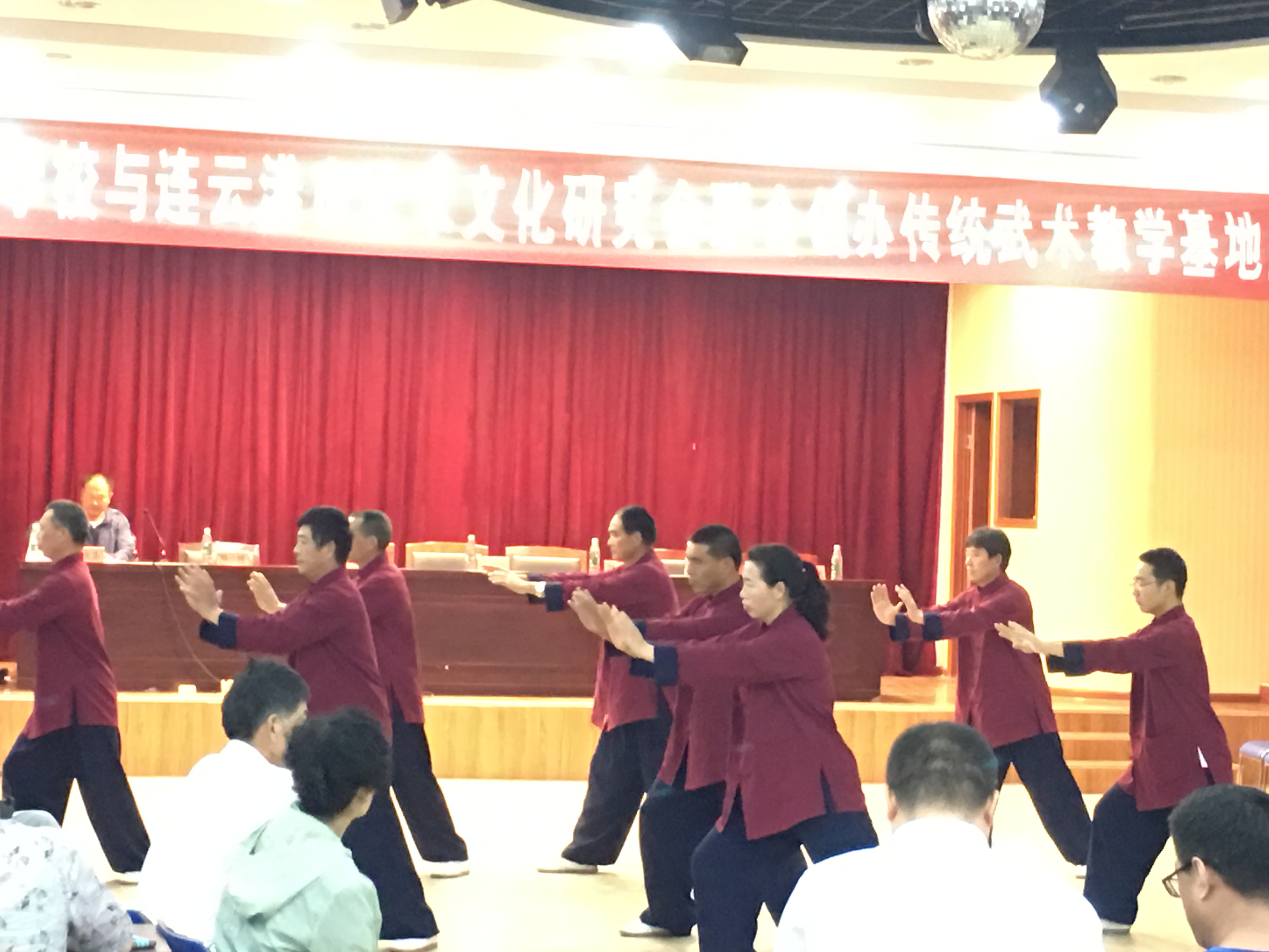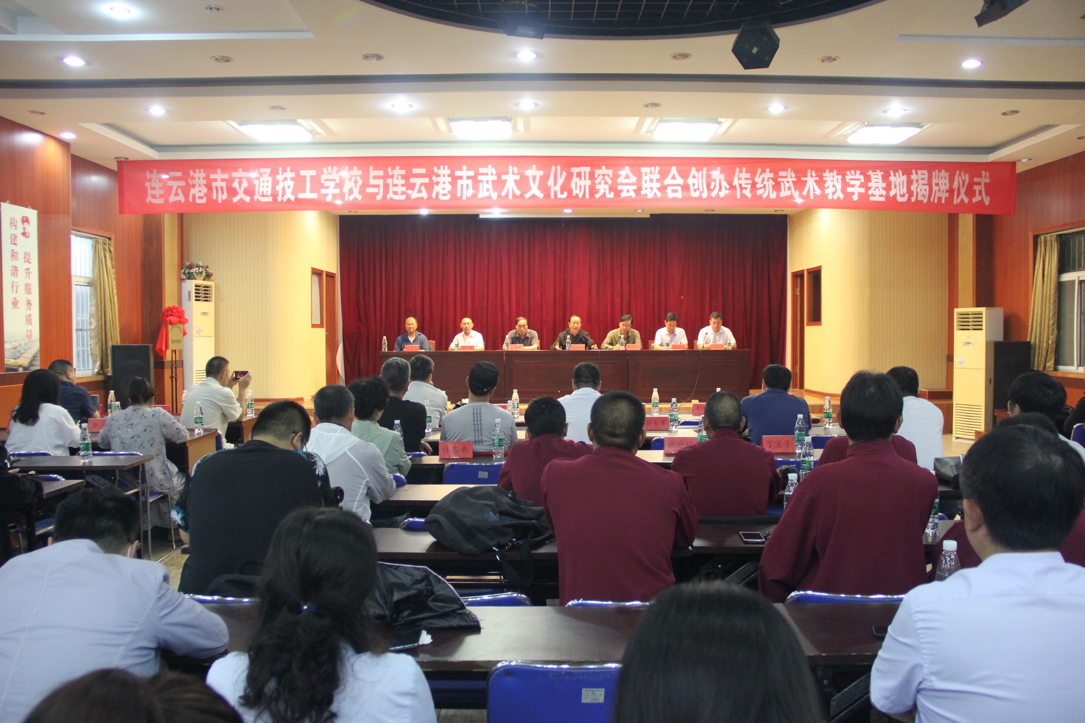 原连云港市人大副主任、市武术文化研究会名誉主席谢建明和市交通控股集团副总经理李树军共同为传统武术教学基地”进行揭牌。李树军指出,此次教学基地的设立,是学校开展合作办学,走特色化办学提供了良好的契机,这一重大举措,将成为两家密切合作的纽带。有了这样一方平台,双方的教育交流会更加频繁,合作会更加密切,这对于促进教育发展和弘扬武术精神具有重要意义。在联合办学过程中要充分发挥办学优势,依托技工学校这个平台,将弘扬中华武术文化充分融入校园,把武术教学办出特色、创出品牌,把这项具有里程碑意义的事情做优、做大做强。