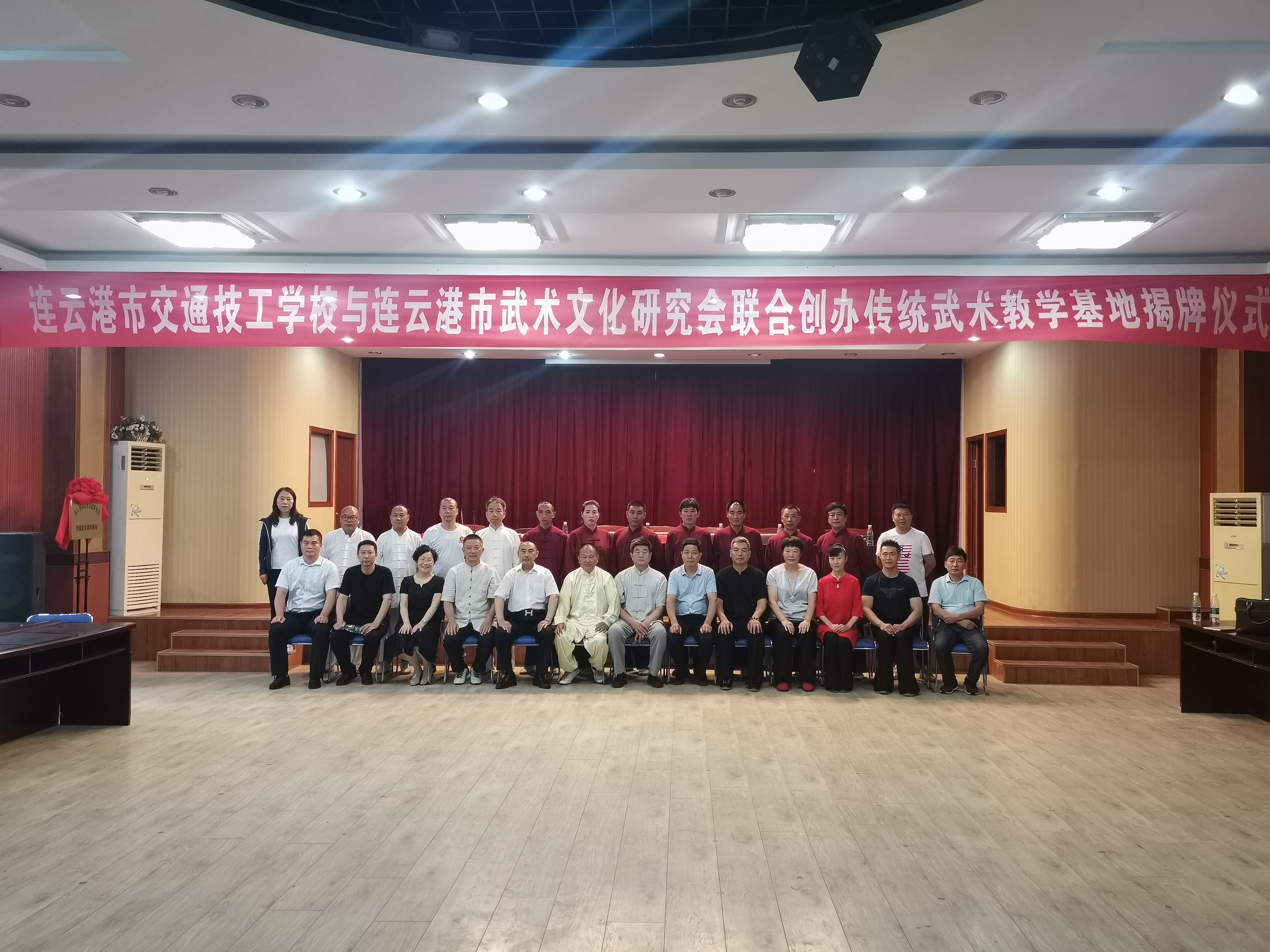 2020年7月12日,连云港市交通技工学校与连云港市武术文化研究会联合举办“传统武术教学基地”揭牌仪式。原连云港市人大副主任、市武术文化研究会名誉主席谢建明,市交通控股集团副总经理李树军,市社科联副主席周一云,市民政局社团处处长王爱民,交培公司党委书记、总经理杨维洲,市武术文化研究会会长王庆喜,中国时代先锋论坛秘书长周德等领导出席仪式,交培公司员工参加仪式。仪式由杨维洲主持。