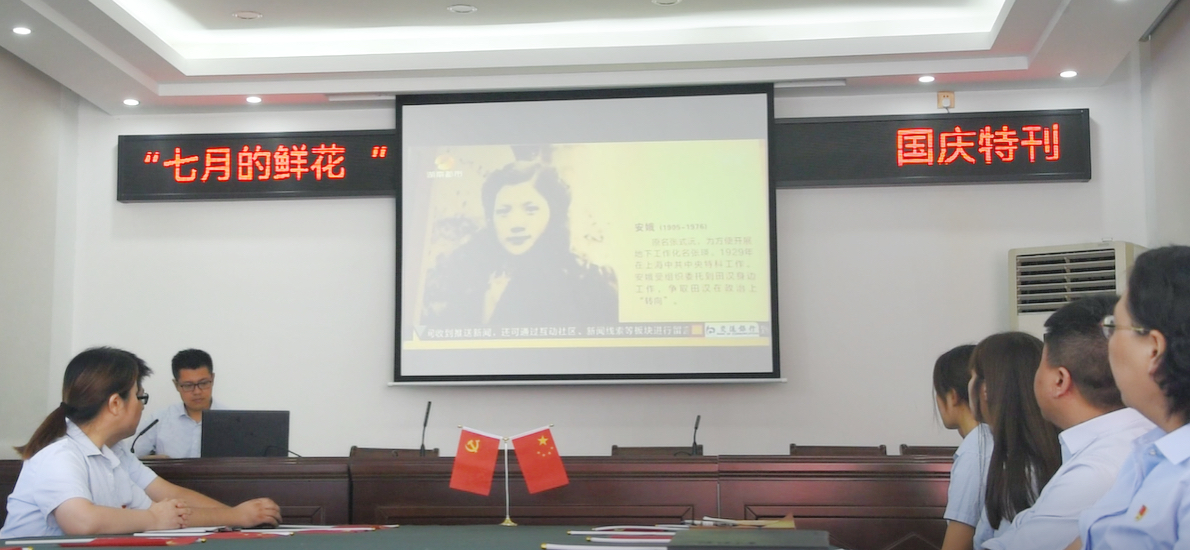 值“国庆”来临之际,江苏海建公司机关党支部于9月29日上午10:00,在公司多功能厅举行“七月的鲜花—讲党史故事、唱革命红歌”国庆特刊。机关支部党员和建党积极分子共25人佩戴党徽、身着统一正装参加活动,公司纪委书记韦晓燕等参加活动。