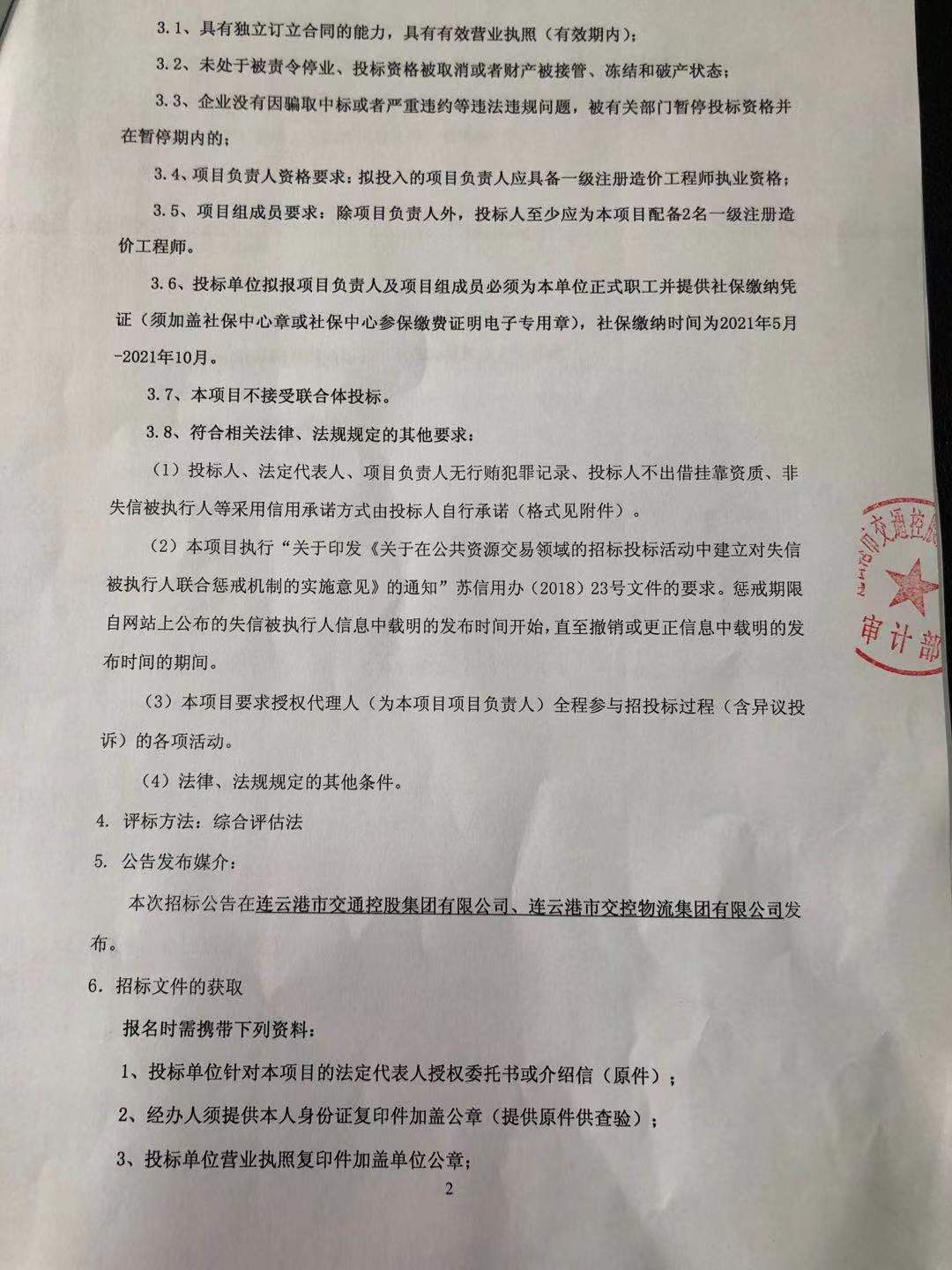 本次招标公告在连云港市交通控股集团有限公司、连云港市交控物流集团有限公司发布。