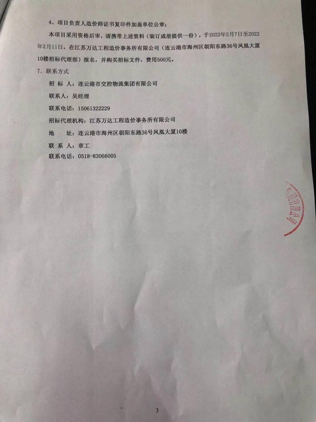招 标 人:连云港市交控物流集团有限公司