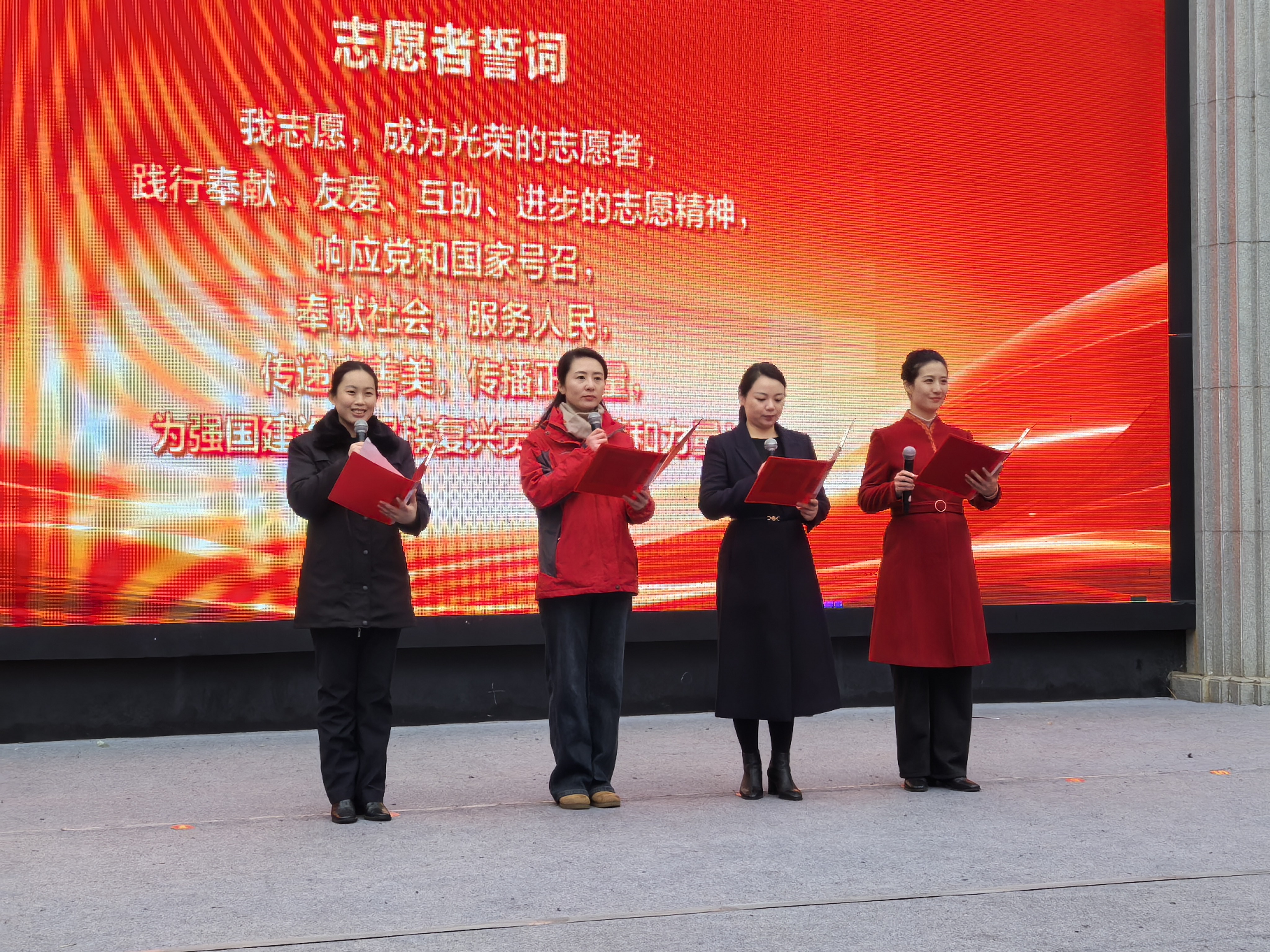 启动仪式上,作为港城志愿服务的一面旗帜,“雷锋车”组的身影格外引人注目。第六代“雷锋车”手李园园身着整齐工装,与其他三名志愿者一同代表全市志愿者昂首走上宣誓台,带领全场庄严宣誓,铮铮誓言展现了志愿者们传承雷锋精神、服务社会的坚定决心。全国人大代表、第五代“雷锋车”手权太琦宣读了活动倡议书。她结合自身履职感悟,号召全市人民争做雷锋精神的传承者、志愿服务的践行者、奋进“十五五”的贡献者。情真意切的倡议赢得现场掌声雷动。