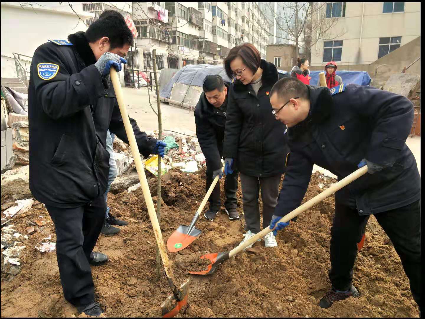 此次义务植树活动是由公交集团快速公交事业部共建单位棠梨社区发起的,参加植树的人员两到三人一组,挖坑、放苗、回填土分工合作,现场充满了欢声笑语。为了保证树苗栽种成活率,专业种植人员在现场对大家进行了栽树技术指导,通过一个多小时的劳动,二十几个人共栽了近百棵海棠树。
